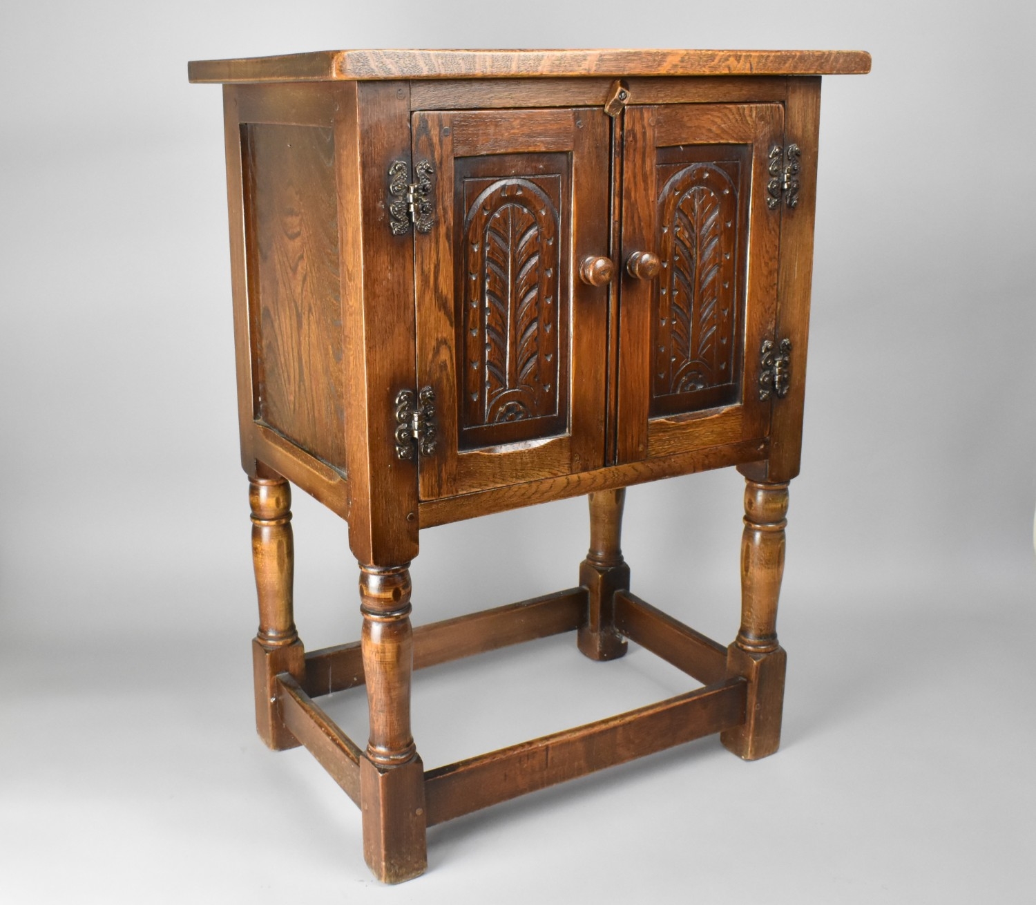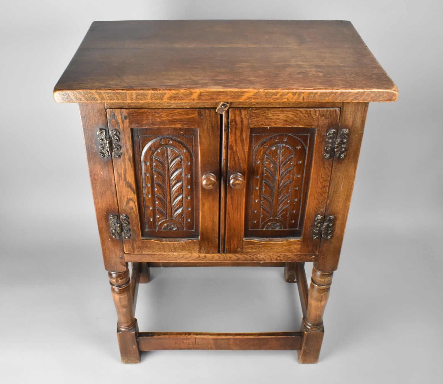 A Mid 20th Century Small Carved Oak Pedestal Cabinet Possibly Old Charm or Jaycee, 51x33x68cm