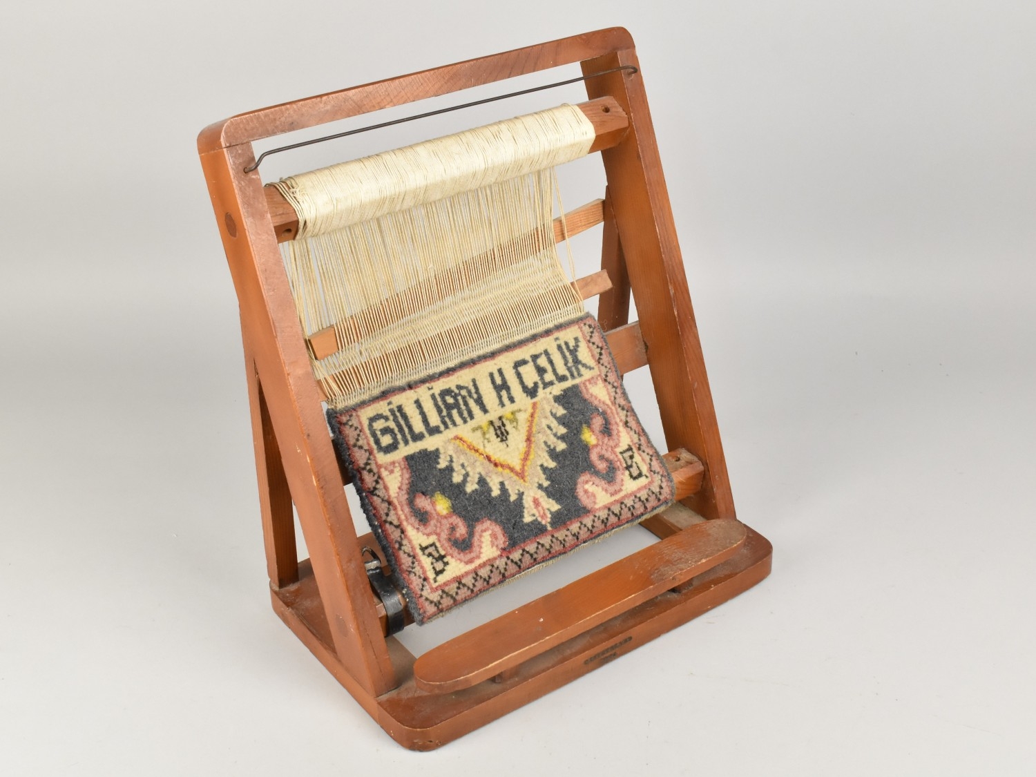 A Small Mid 20th Century Table Top Weaving Loom Showing the Work of Gillian H Celik, 30cms Wide and 34cms High