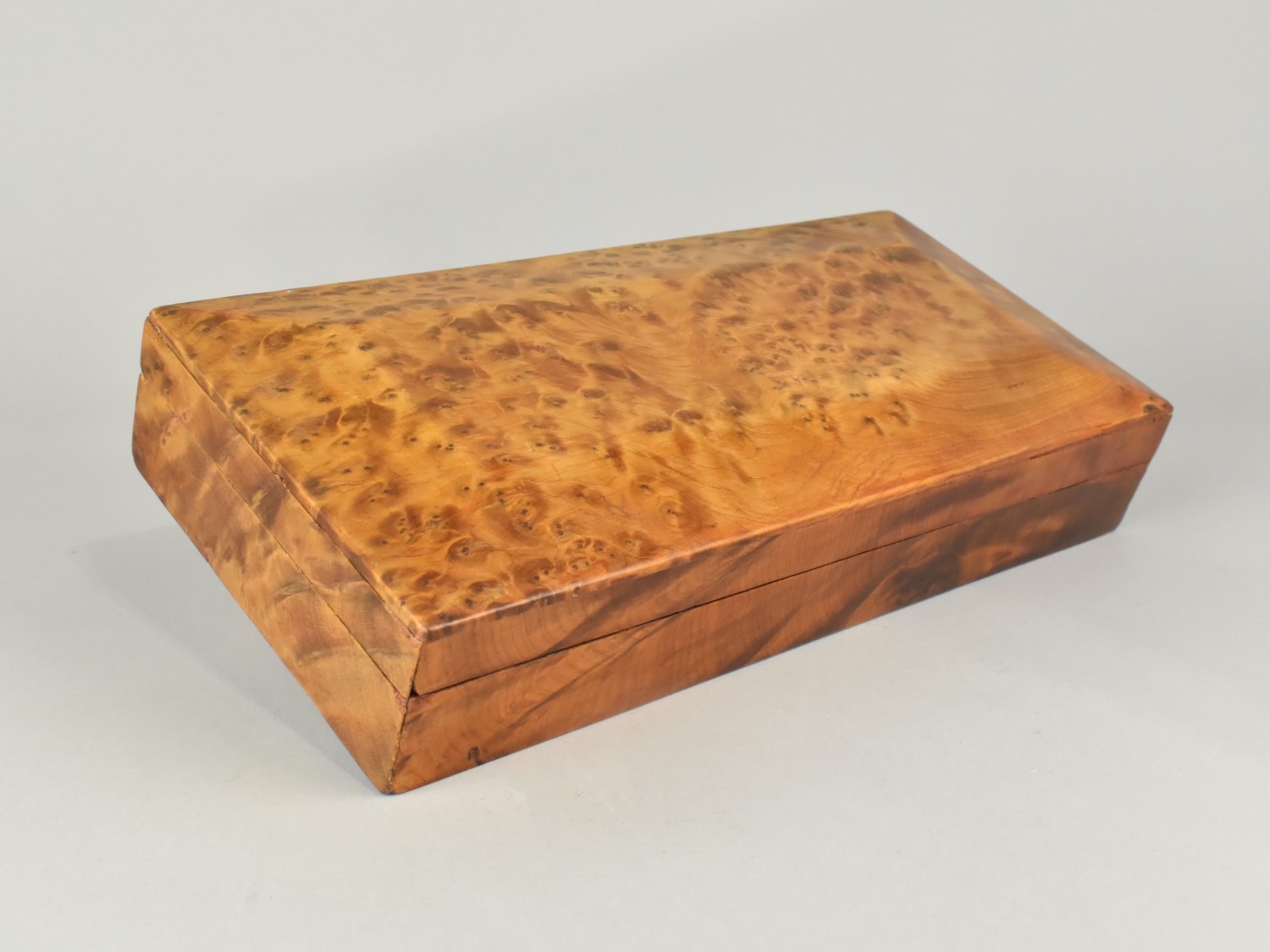 A Far Eastern Burr Wood Cushion Topped Storage Box, 30cms Wide