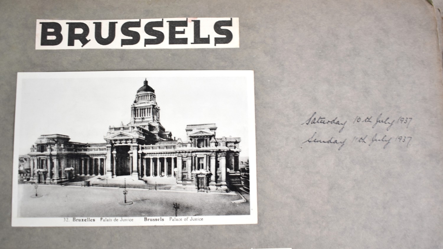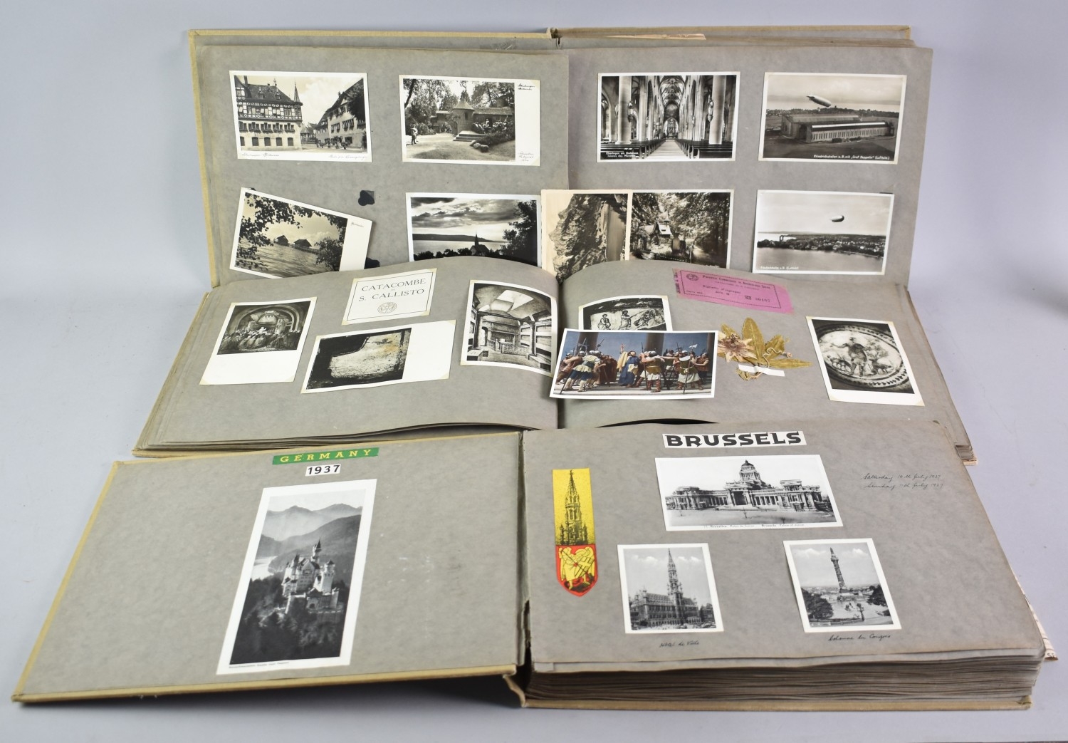Three Photograph/Postcard Albums Recording Trips Made Throughout Europe in the The Late 1930s to include Belgium, Italy, Germany, Chamonix Skiing Etc