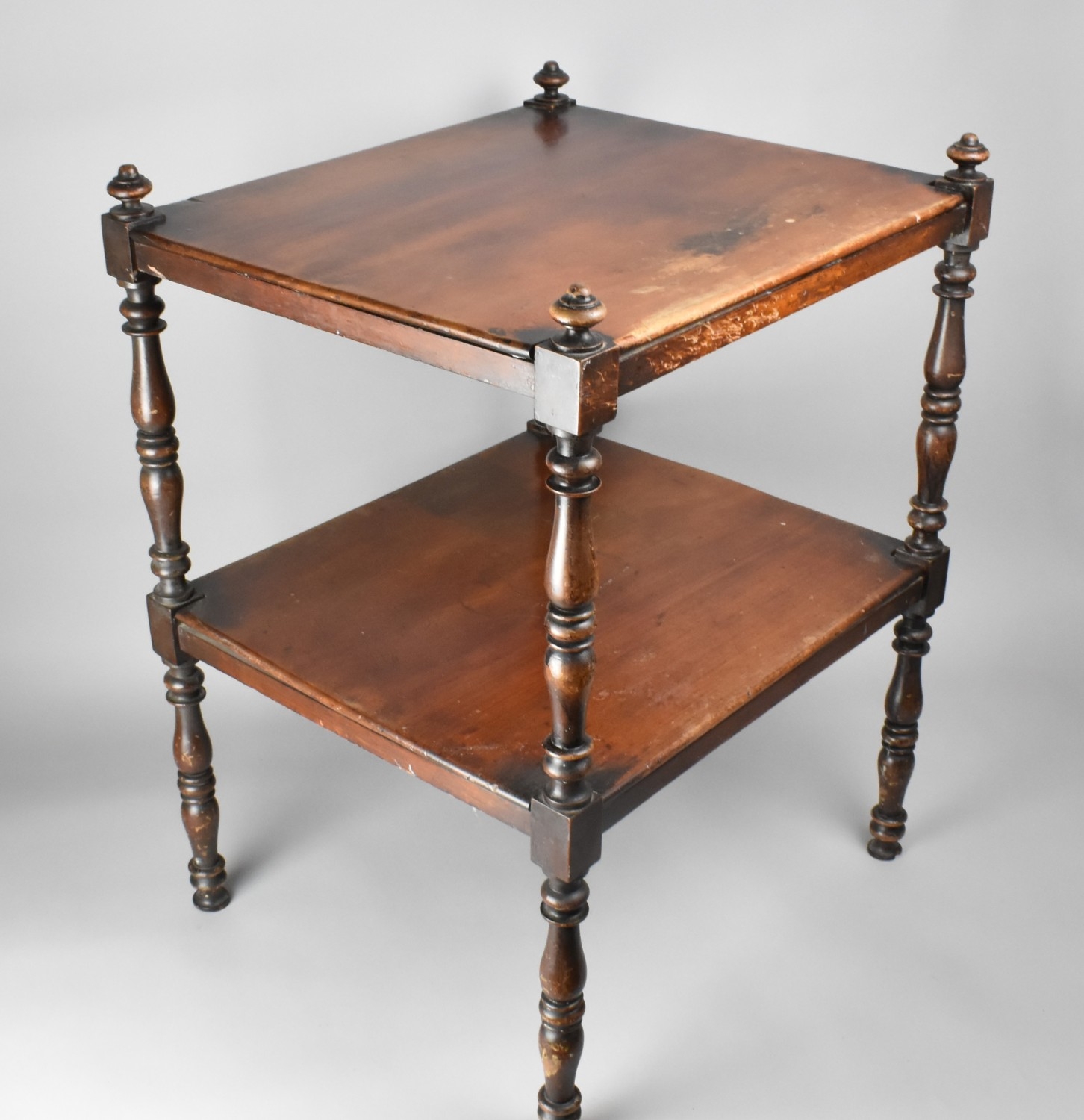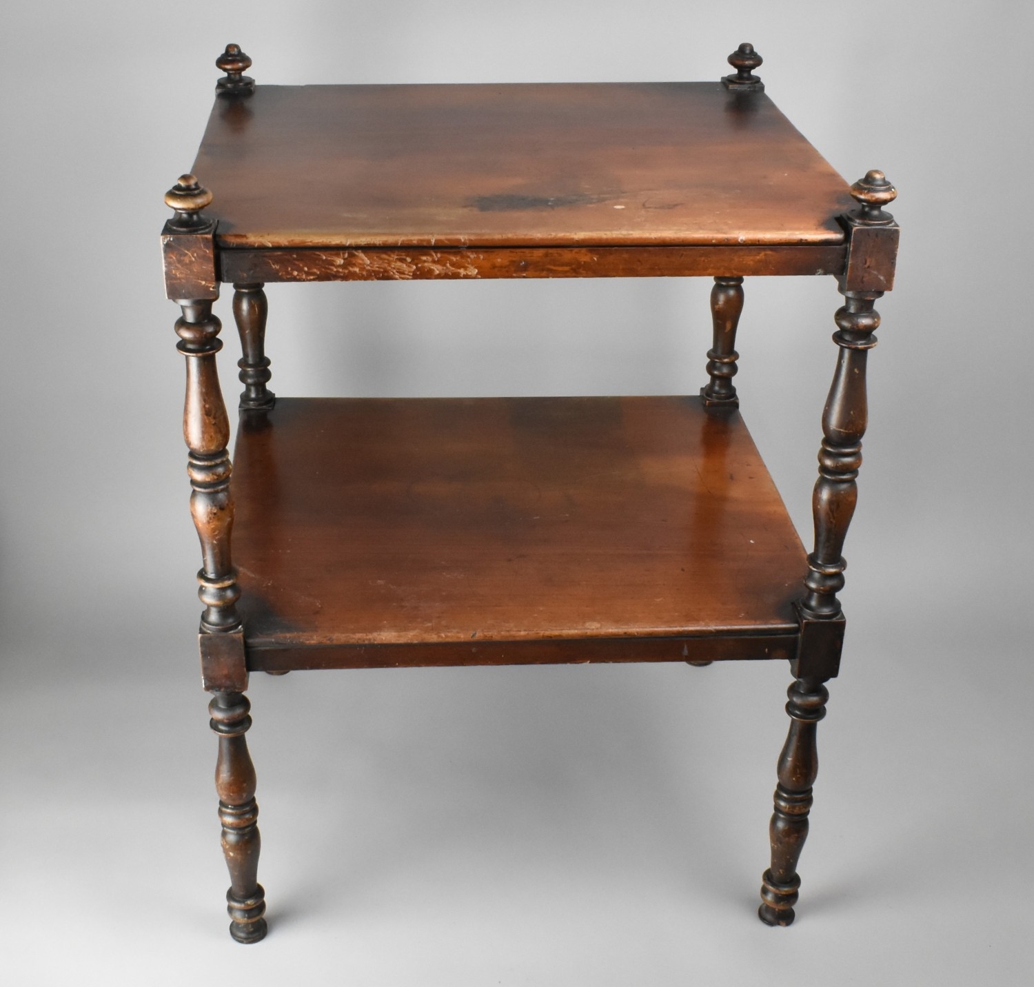 A 19th Century Mahogany Two Tier Mahogany Whatnot Open Display Stand with Turned Wooden Legs, 51.5x46x69cm high