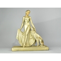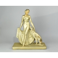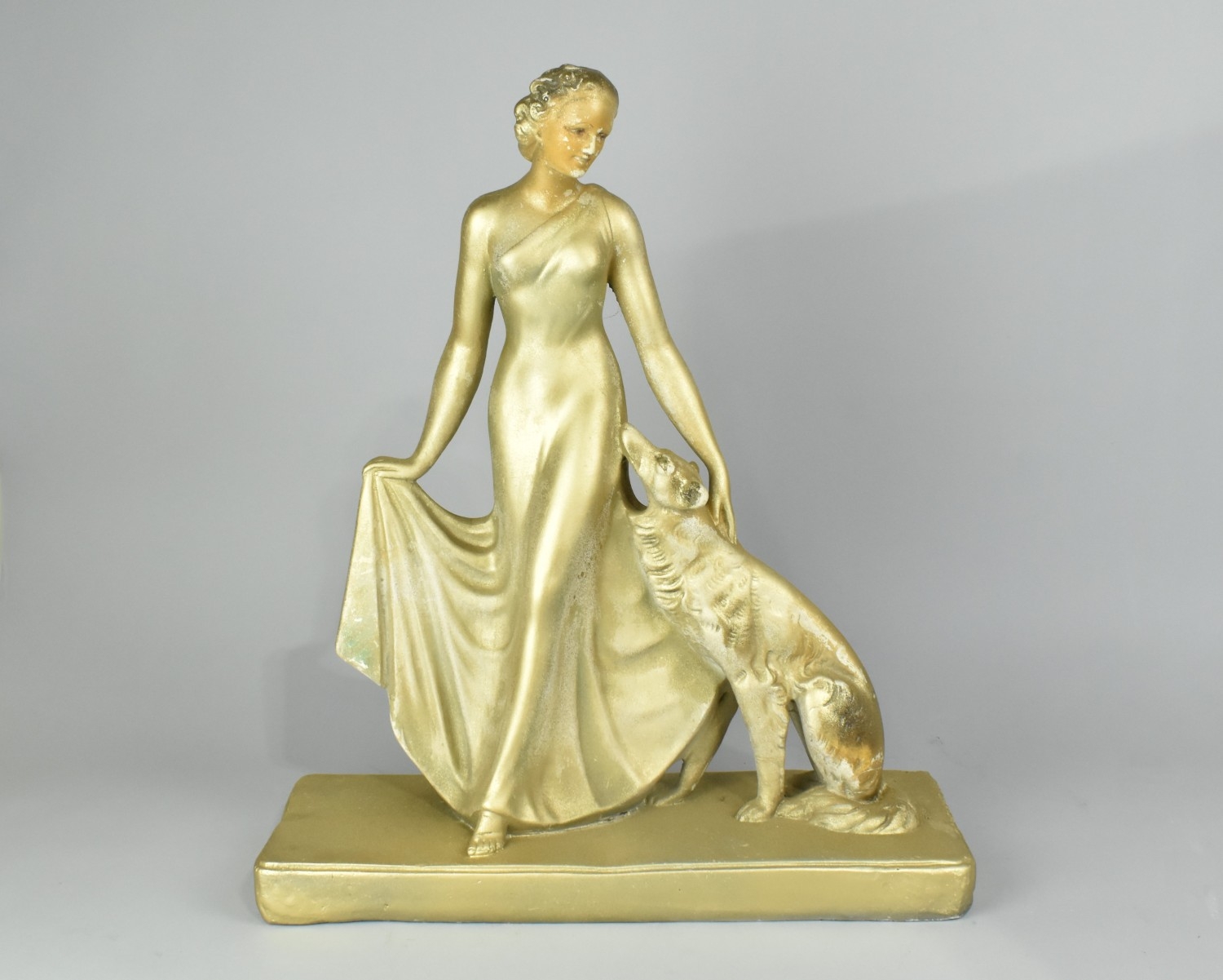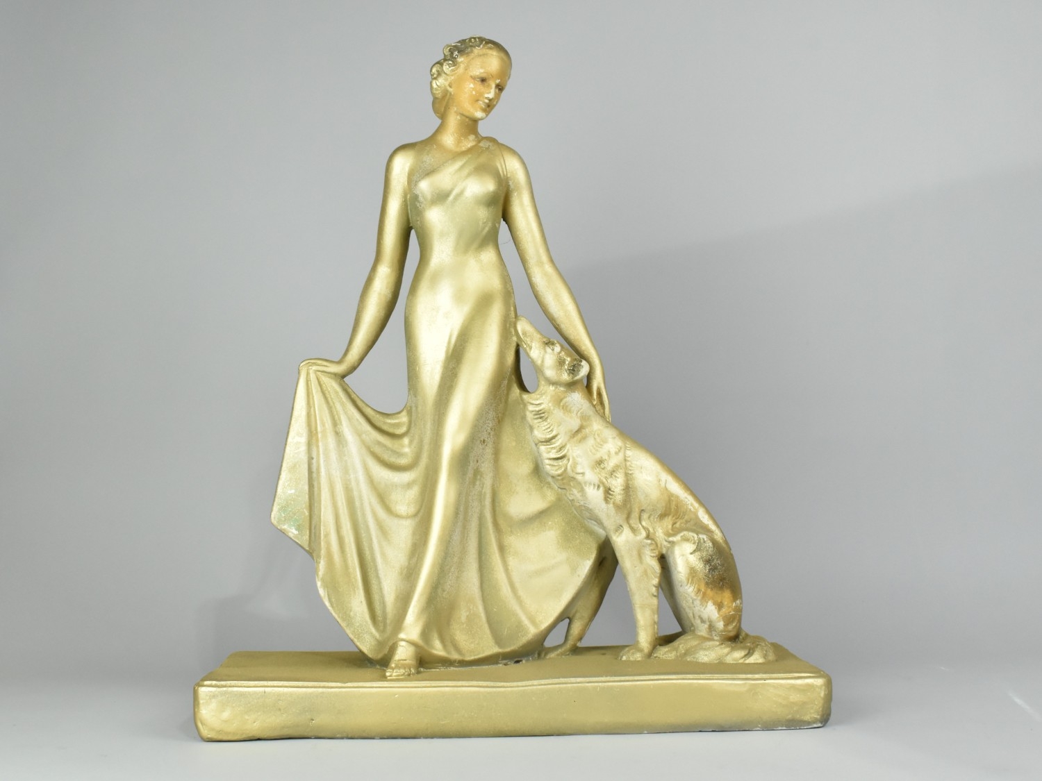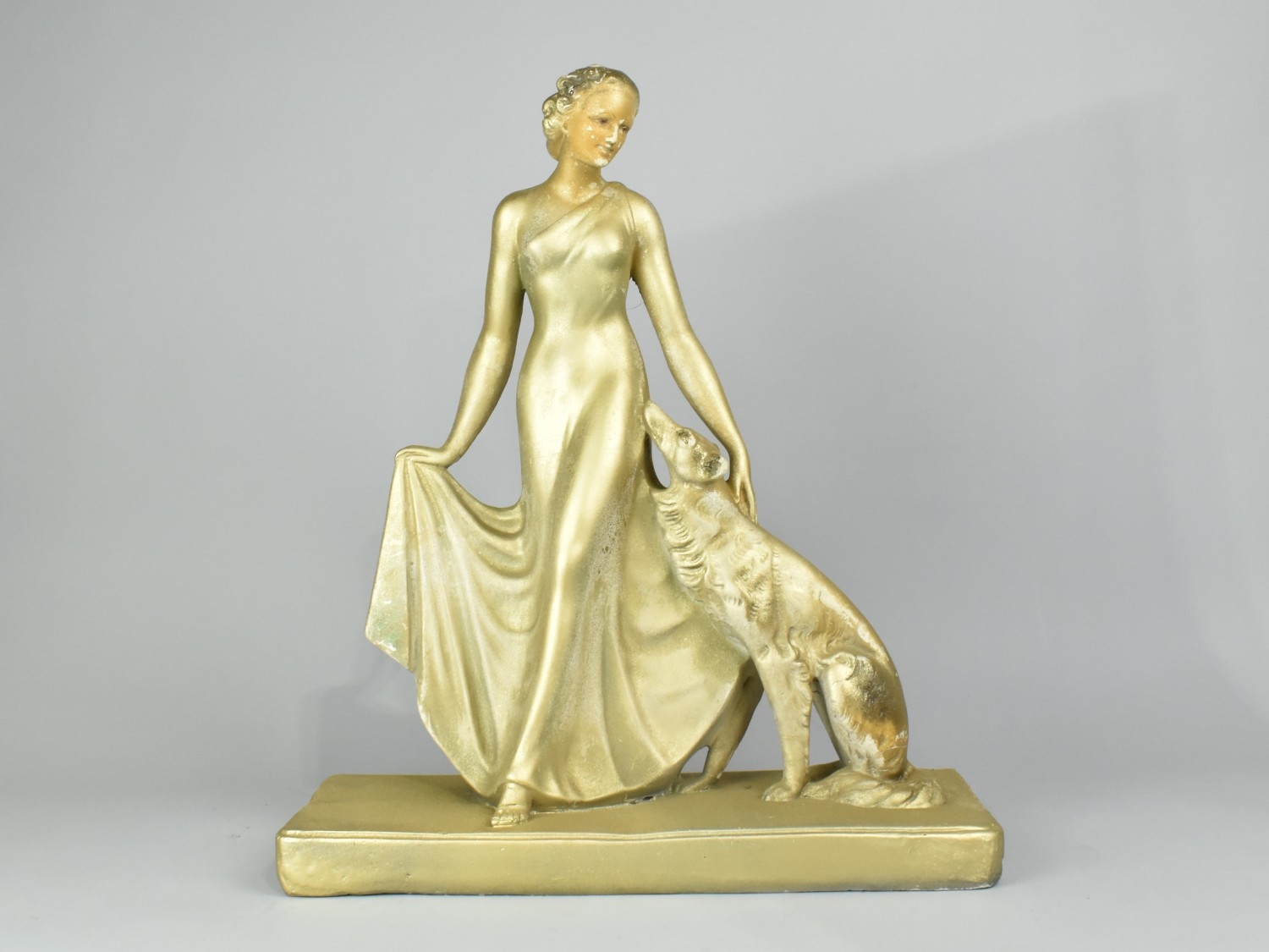 An Art Deco Chalkware Figure Group After Salvatore Melani, Lady and Dog, 44x52cm