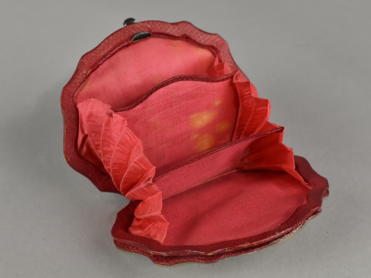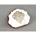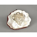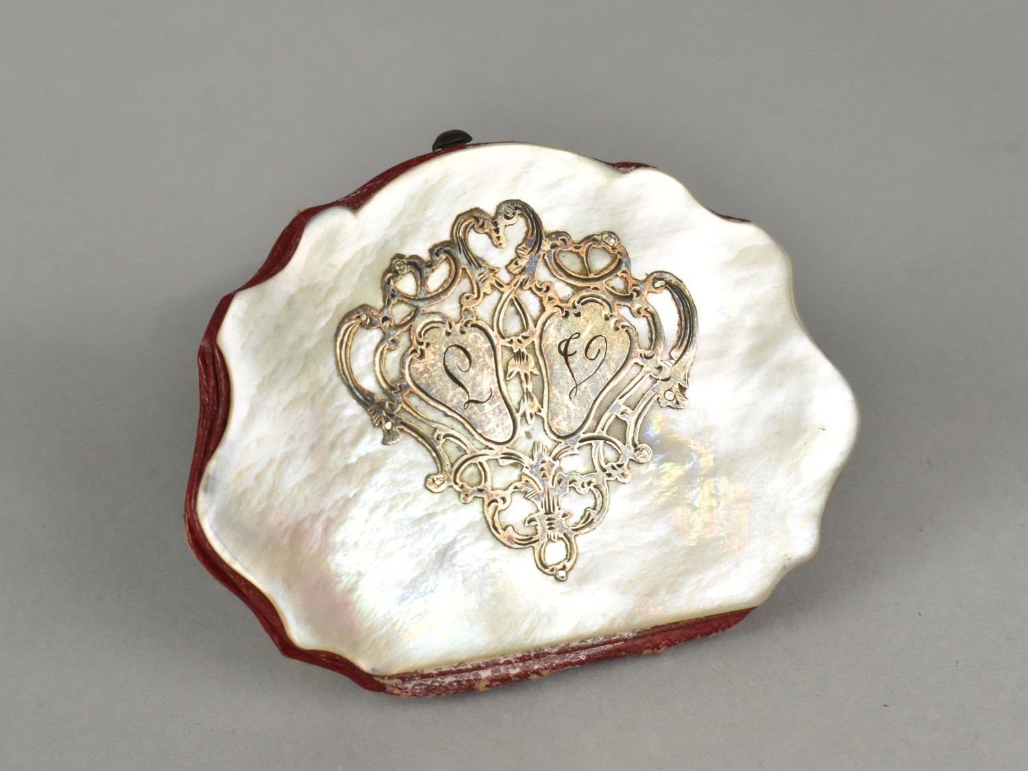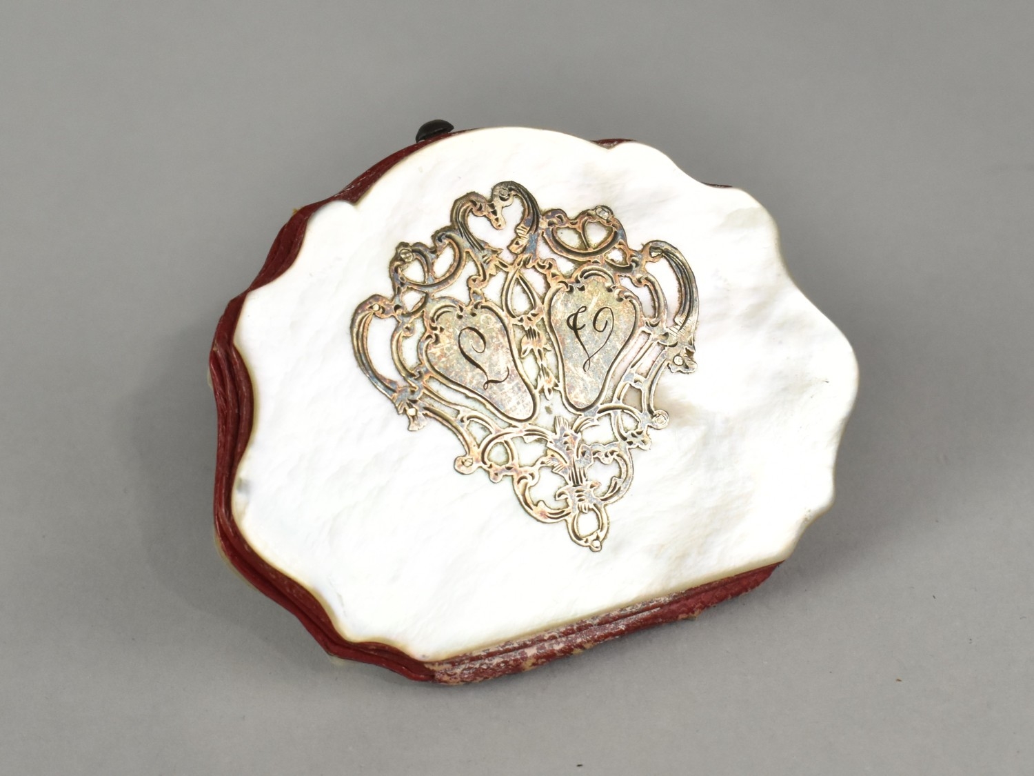 A Late 19th Century Mother of Pearl and Silver White Metal Lovers Purse Monogrammed L and V, 7cms Wide