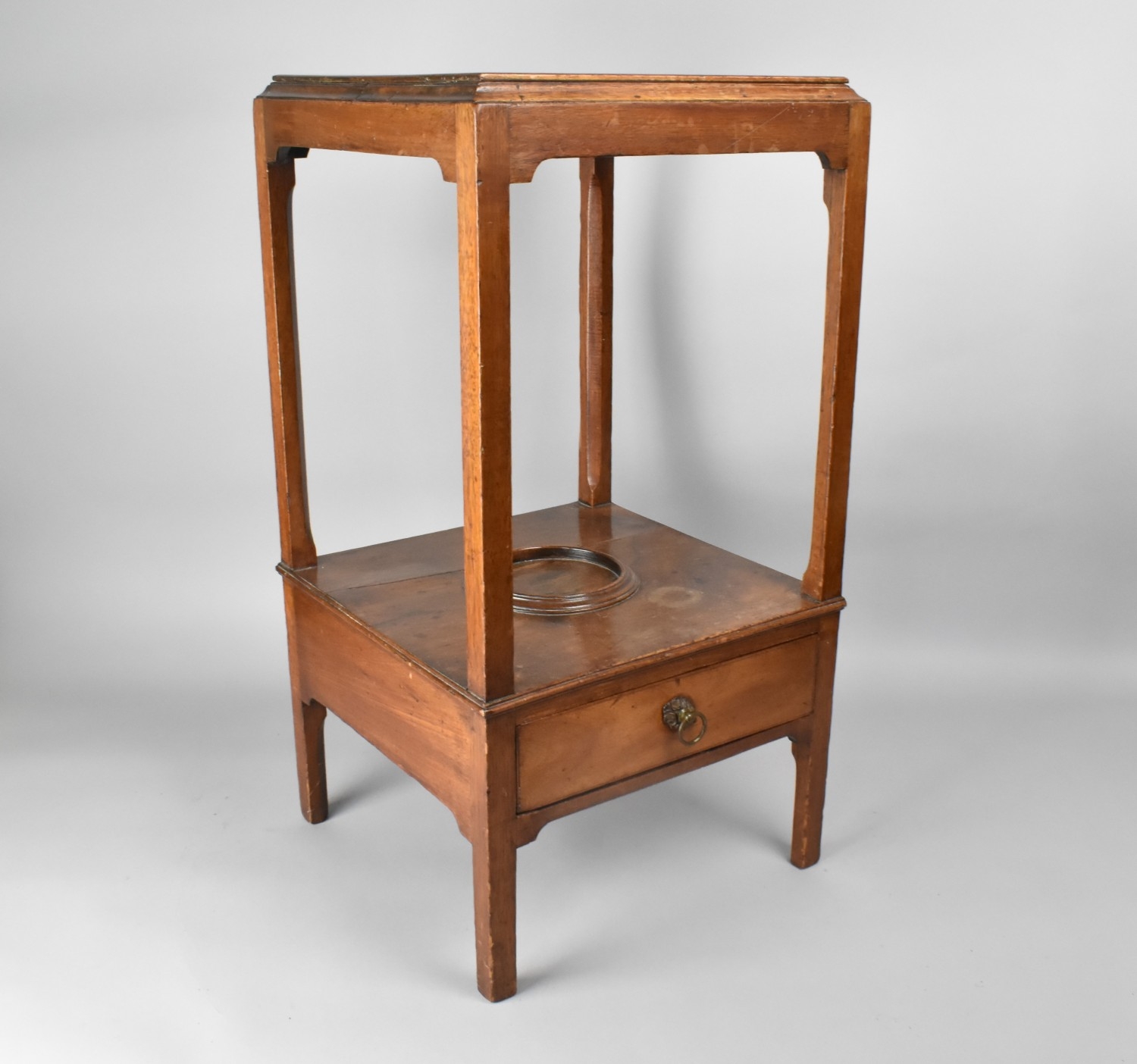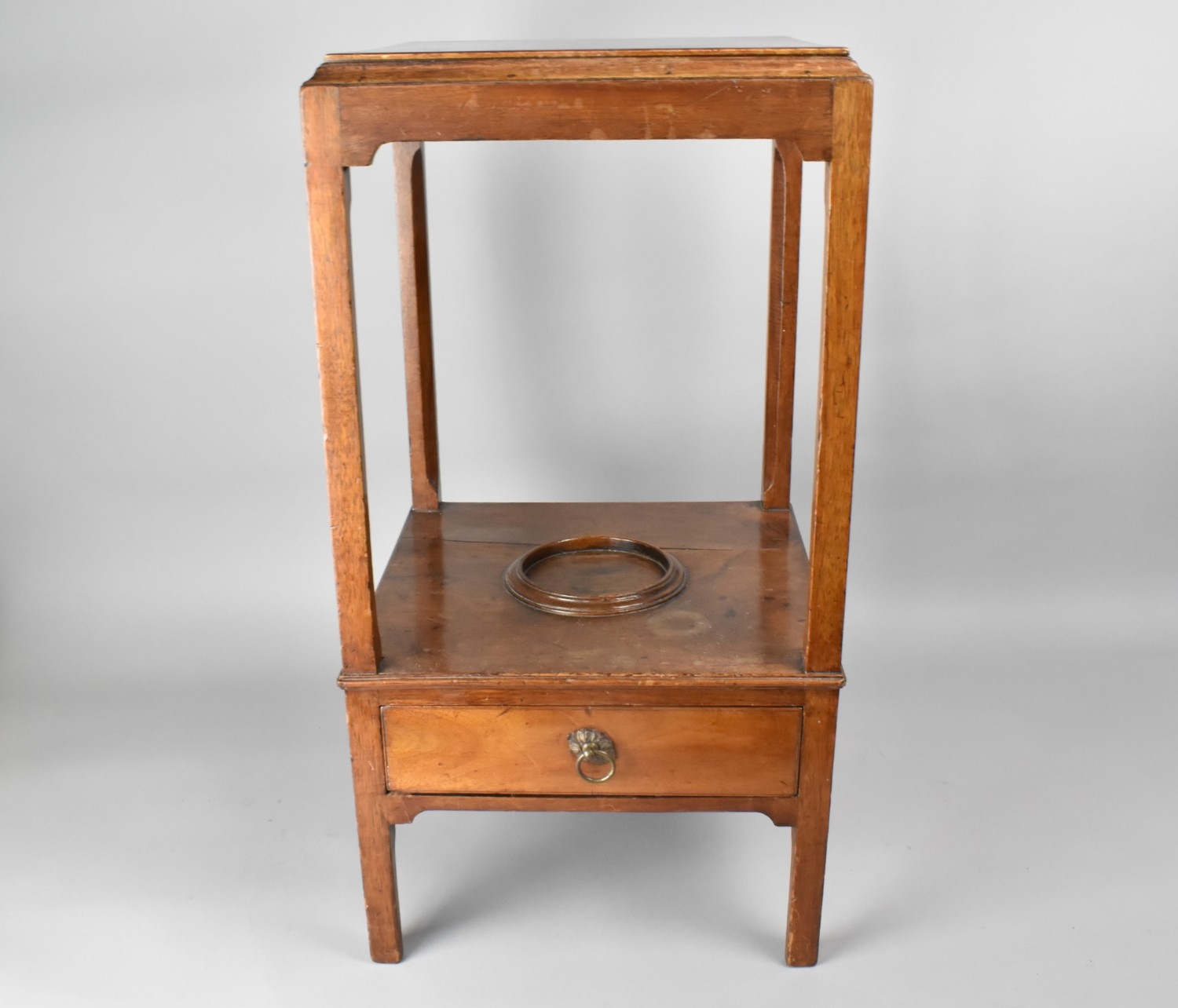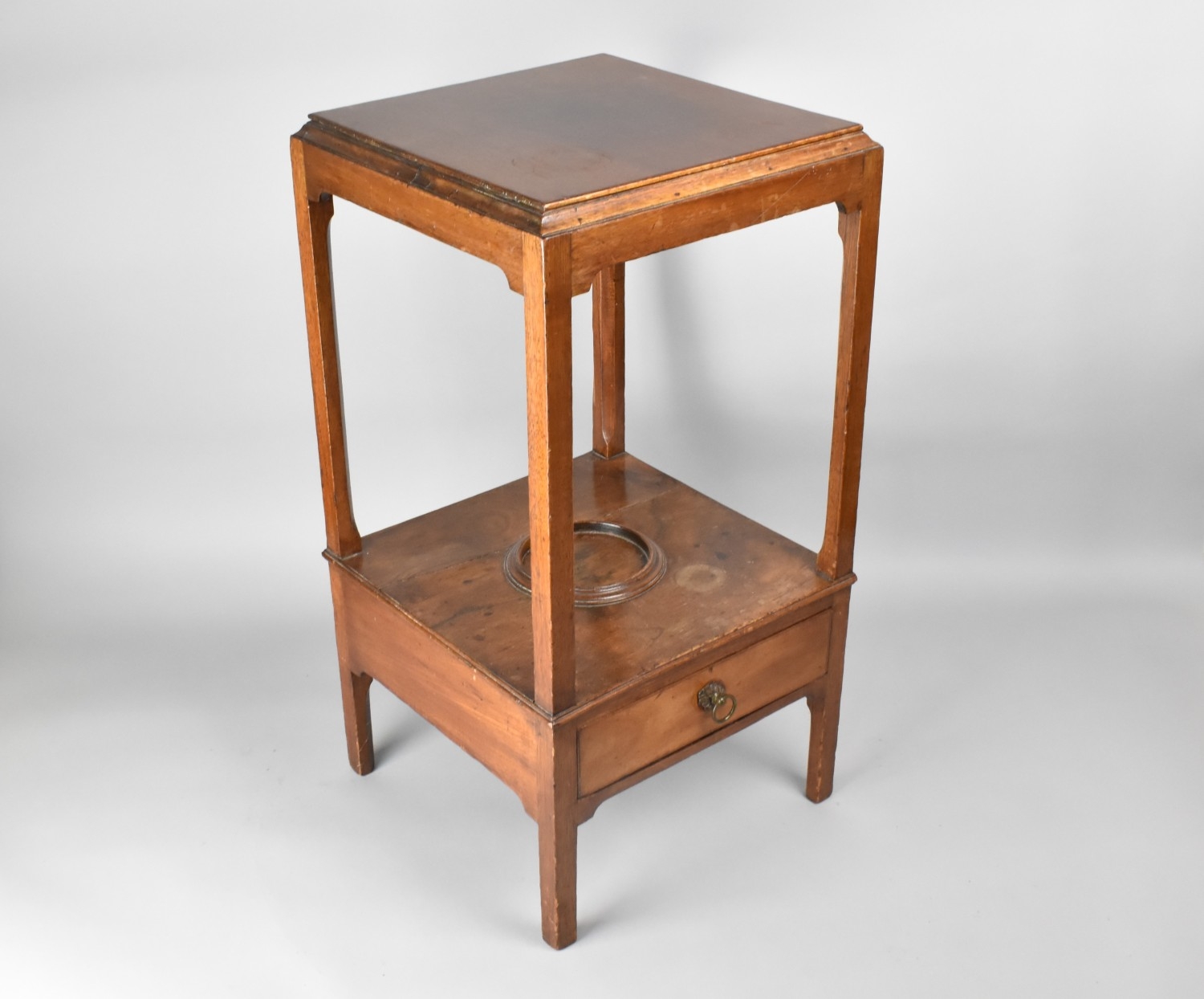 A 19th Century Mahogany Two Tier Washstand with Single Drawer Base Having Top Bowl Ring, 33x33x63cm