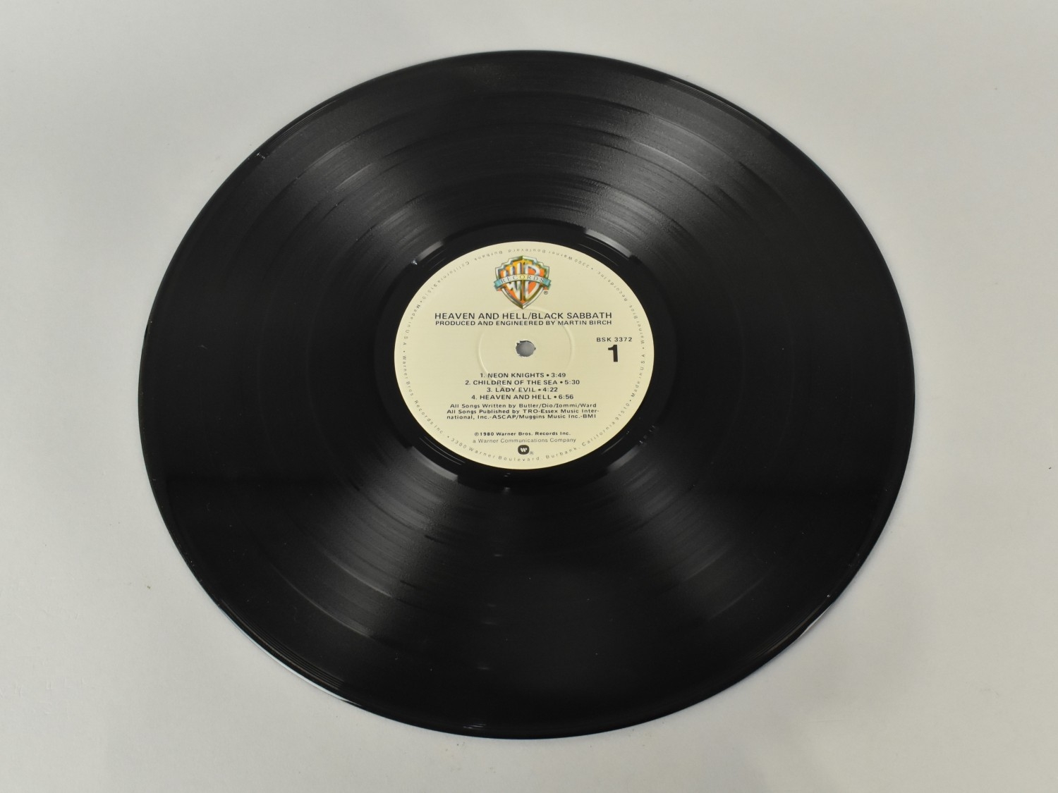 An Autographed Copy of Black Sabbath 'Heaven and Hell', Warner BSK 3372, Signed by Tony Lommi and Geoff Nicholls