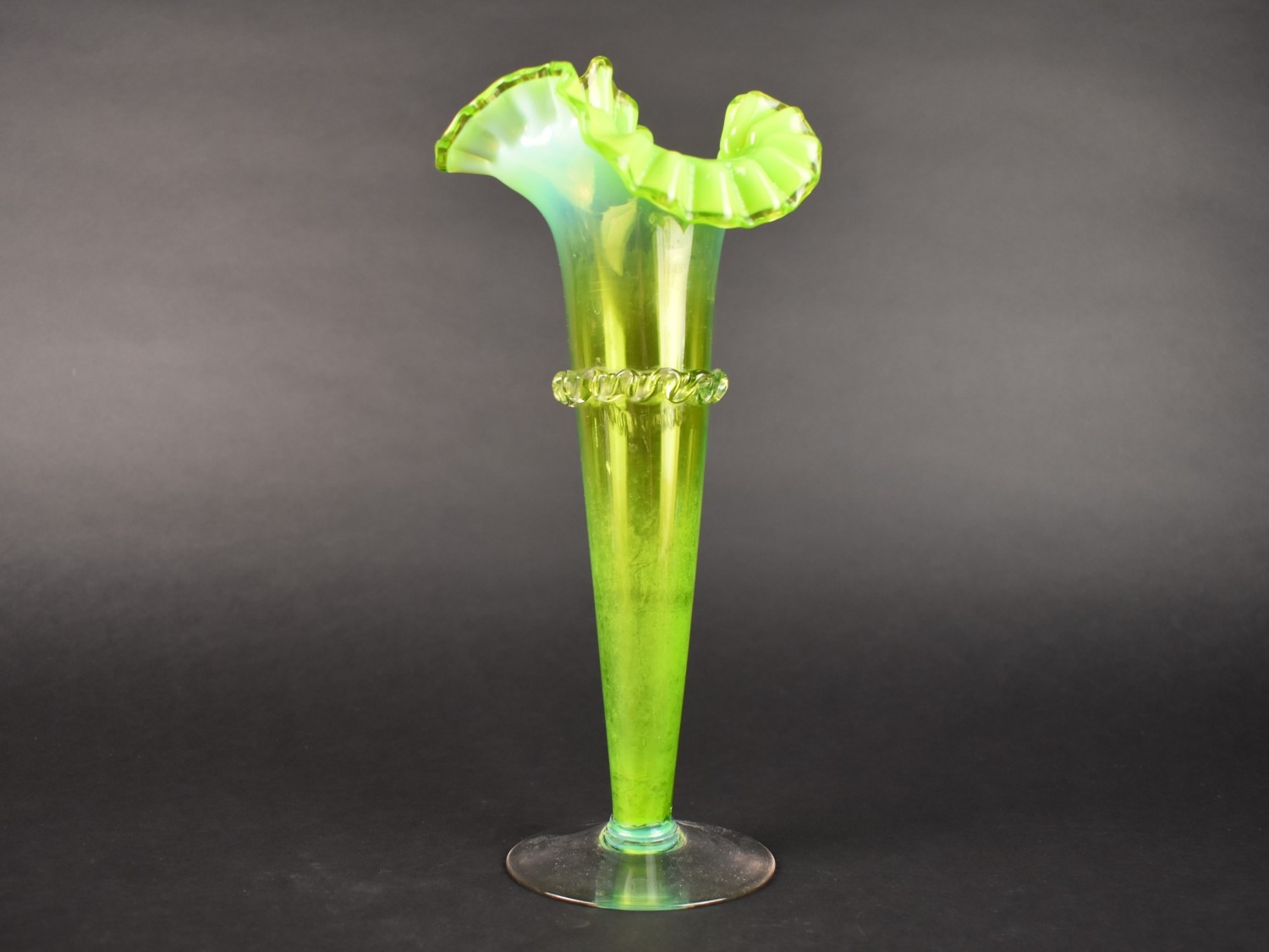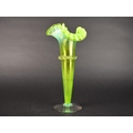 A Late Victorian Vaseline Glass Jack In The Pulpit Vase with Wavy Rim, 28cm High.