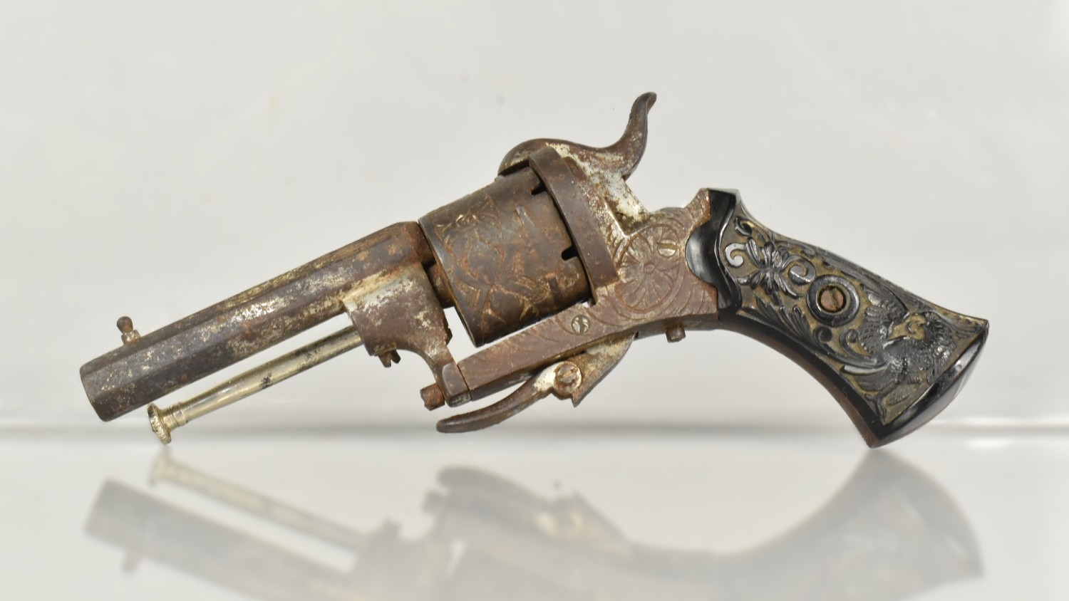 A 7mm (Obsolete Calibre) Pinfire Pocket Revolver with Octagonal Sighted Barrel, Folding Trigger and Complete with Ejector Rod