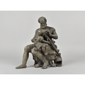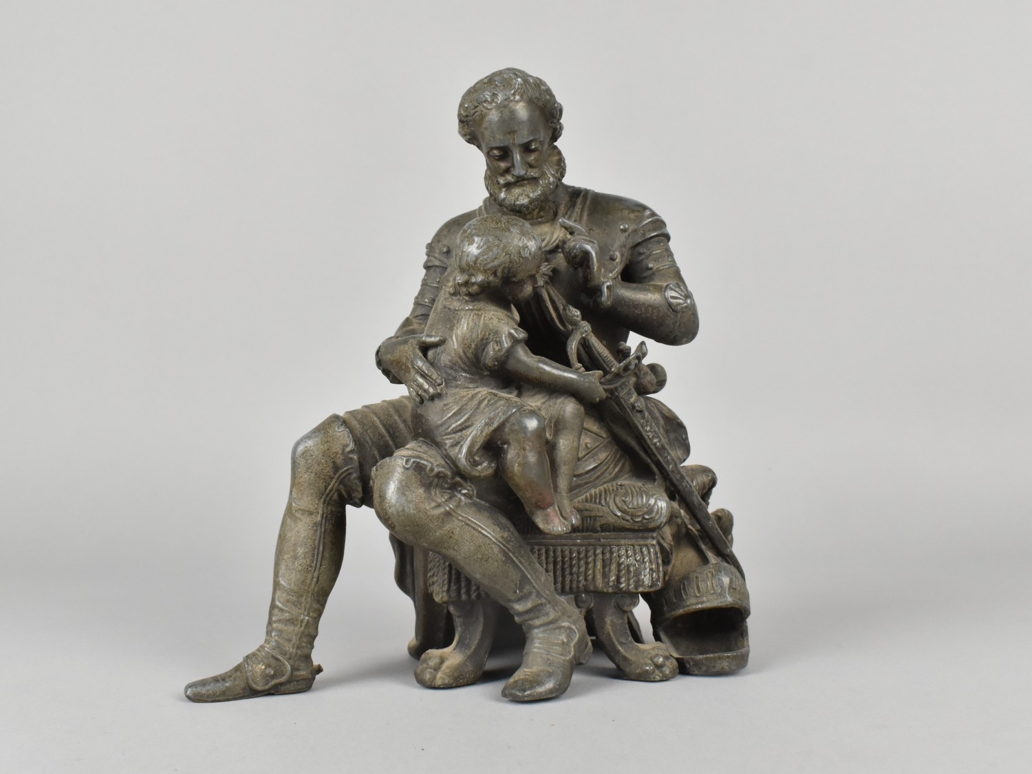 A Continental Spelter Figure Group in the Form of a Seated Officer with Child on His Lap, Probably Originally a Clock Mount, 20cm High.