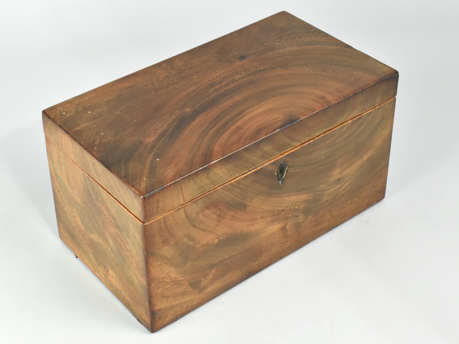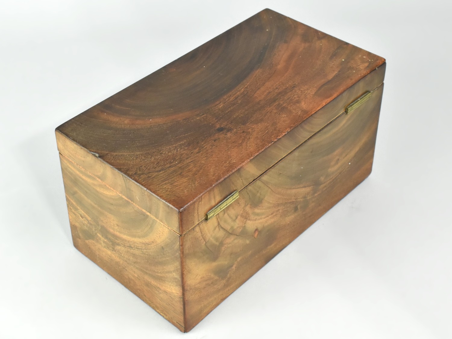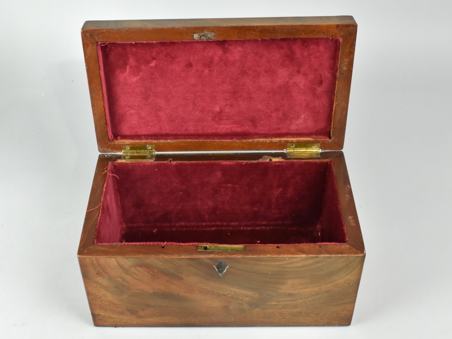 A 19th Century Mahogany Rectangular Tea Caddy Box Converted to Jewellery Box with Velvet Lining, 26cms Wide
