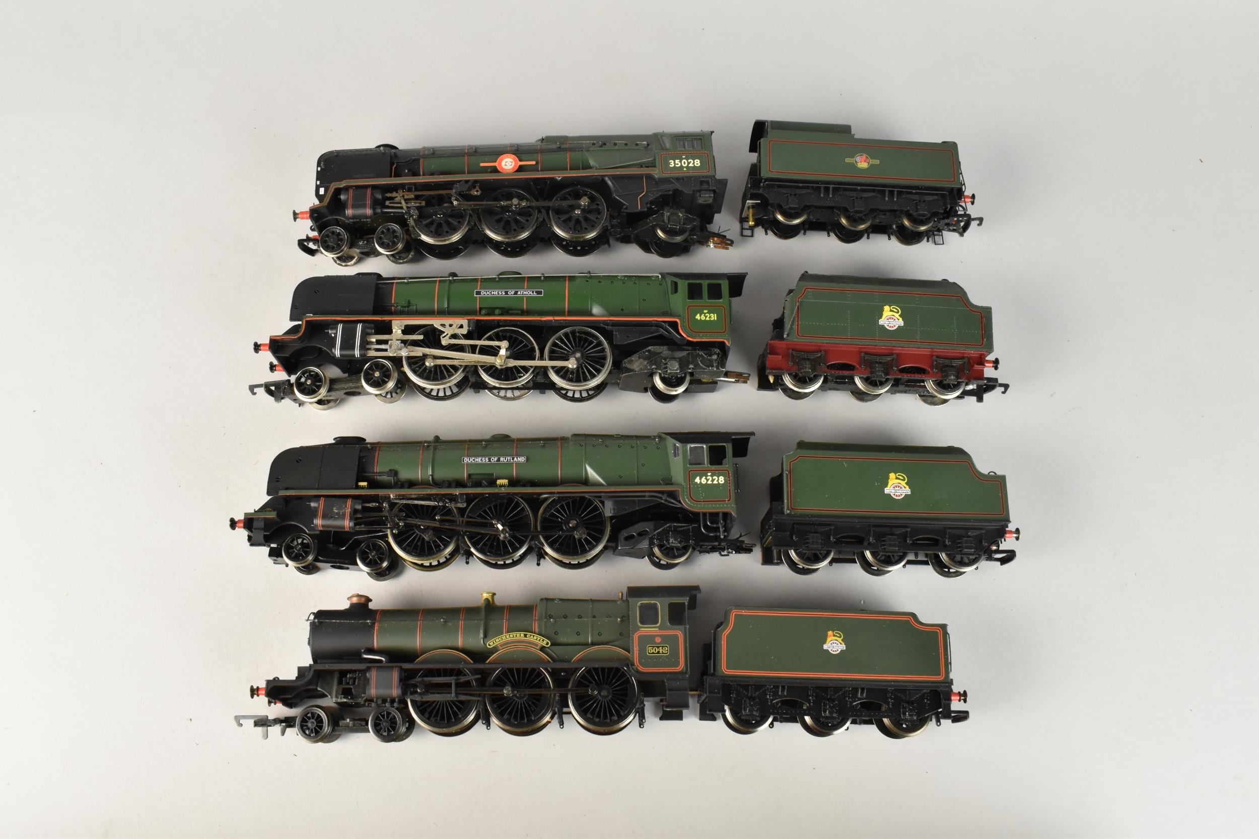 Hornby OO Gauge. A Collection of Four Unboxed Locomotives and Tenders. 'Duchess of Rutland', 'Duchess of Atholl', 'Winchester Castle' and 'Clan Line Merchant Navy Class'