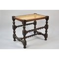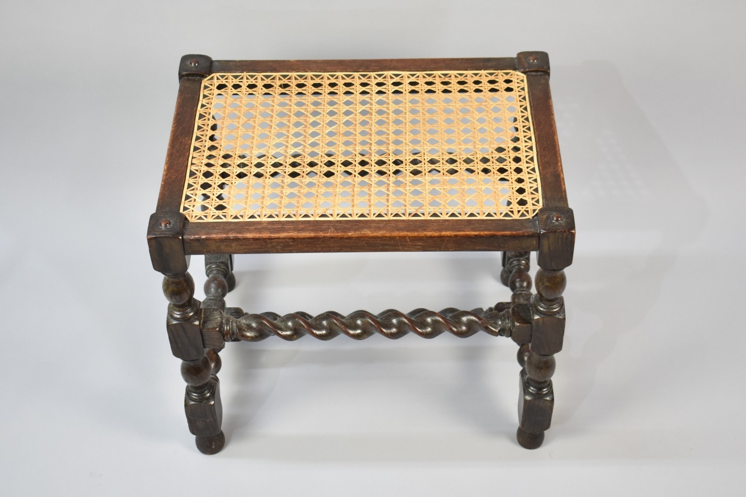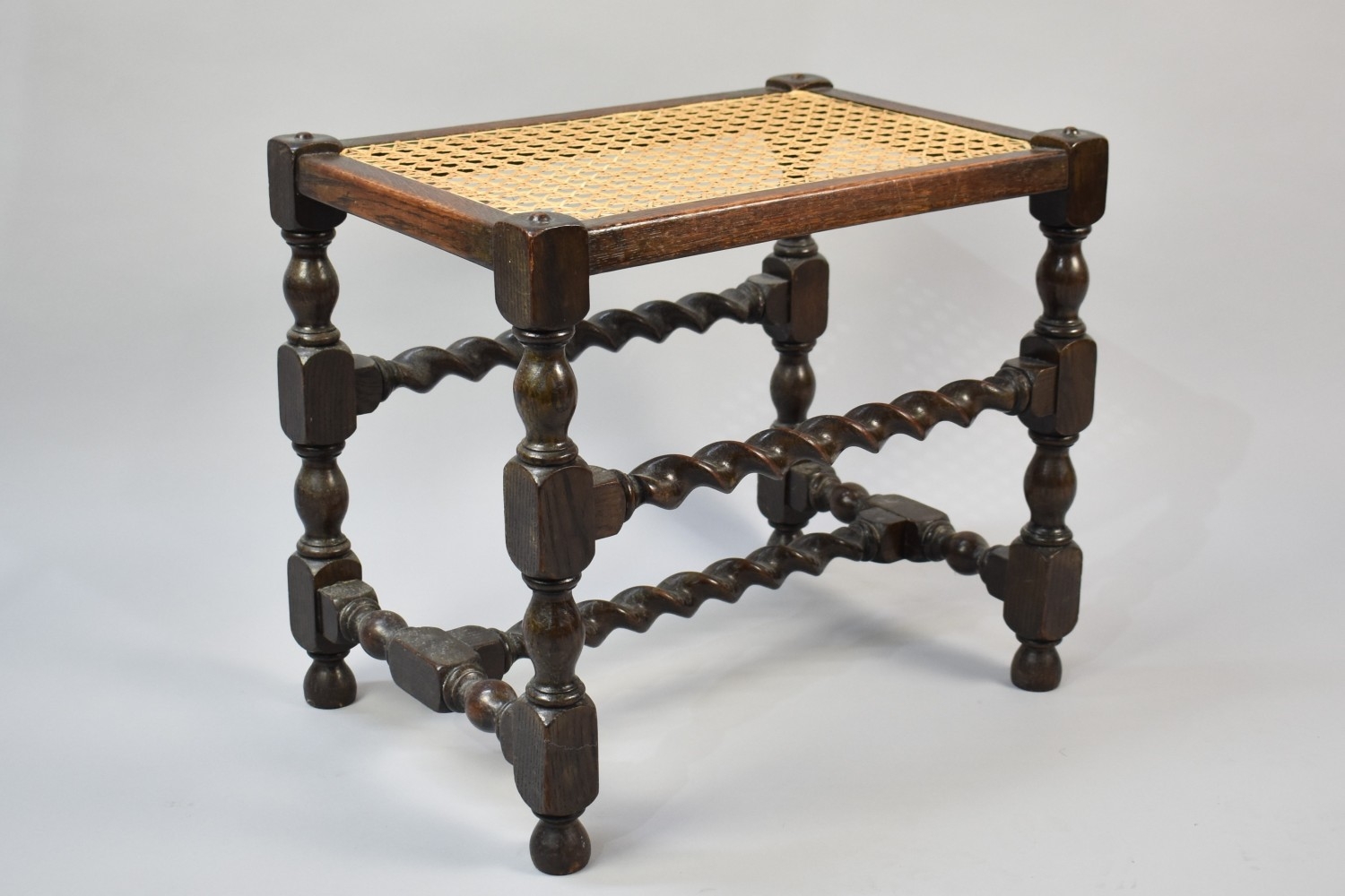 An Edwardian Oak Framed Barley Twist Cane Seated Stool, 50cms Wide and 43cms High