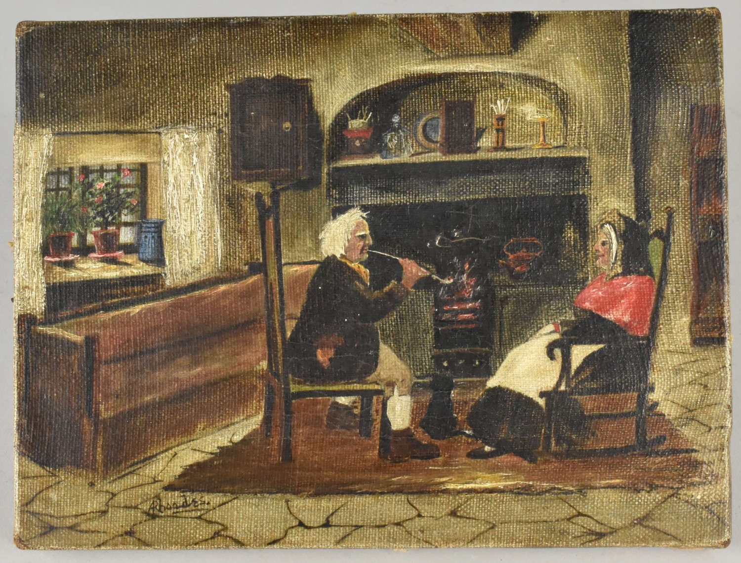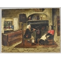 A Small 19th Century Naive Mounted but Unframed Oil on Canvas, Depicting Interior Kitchen Scene, Probably Welsh, 20 X 15cm