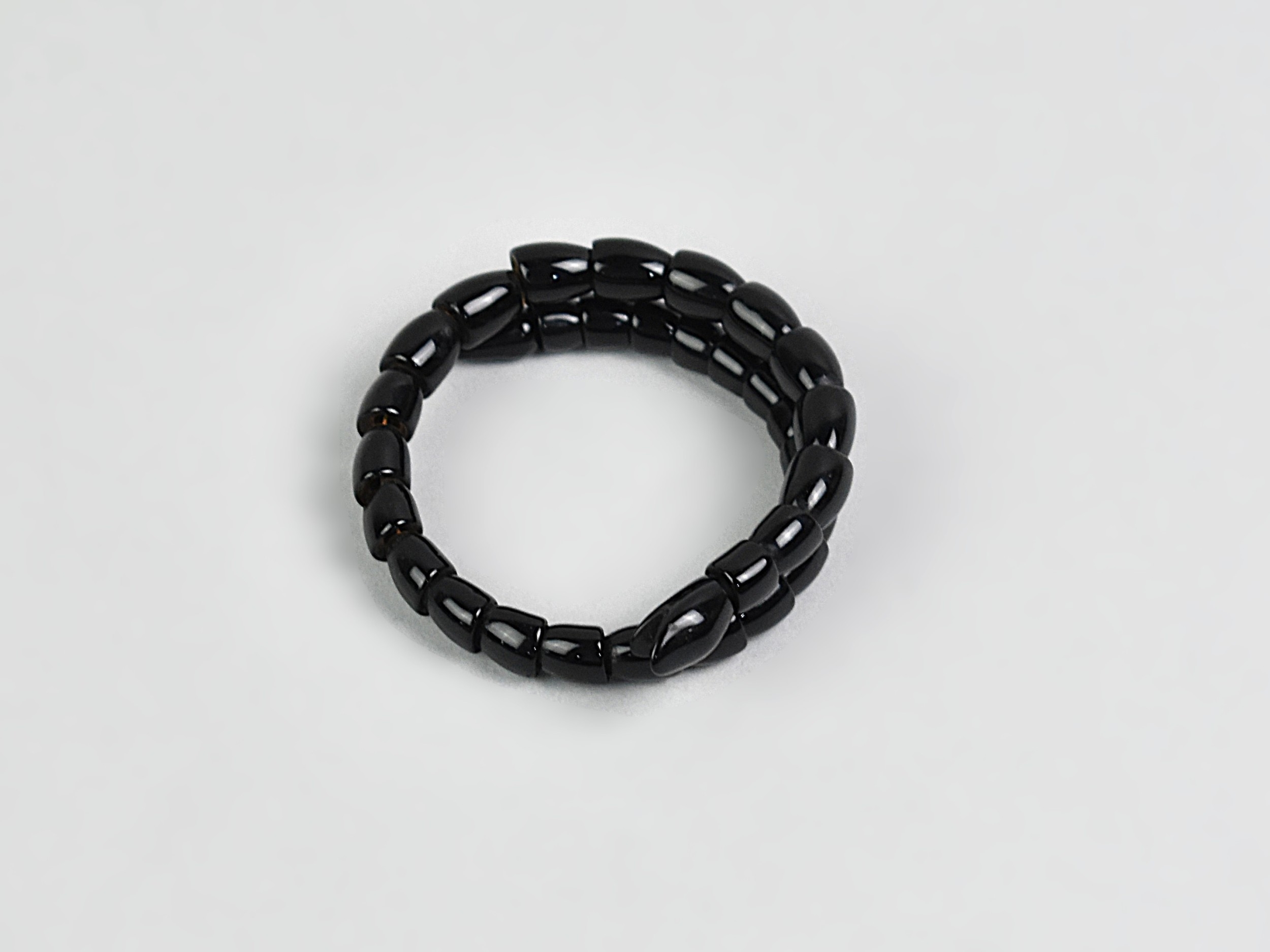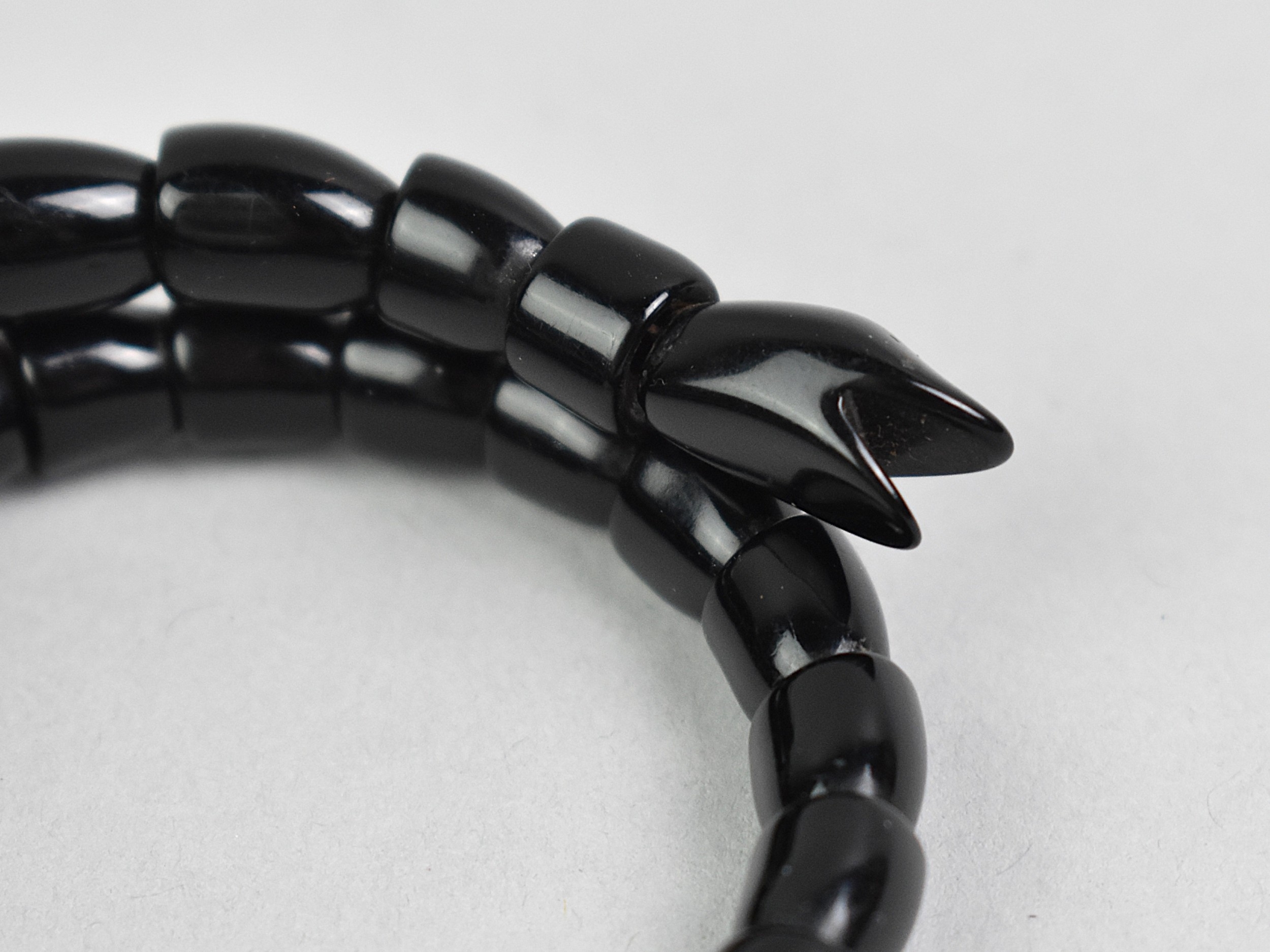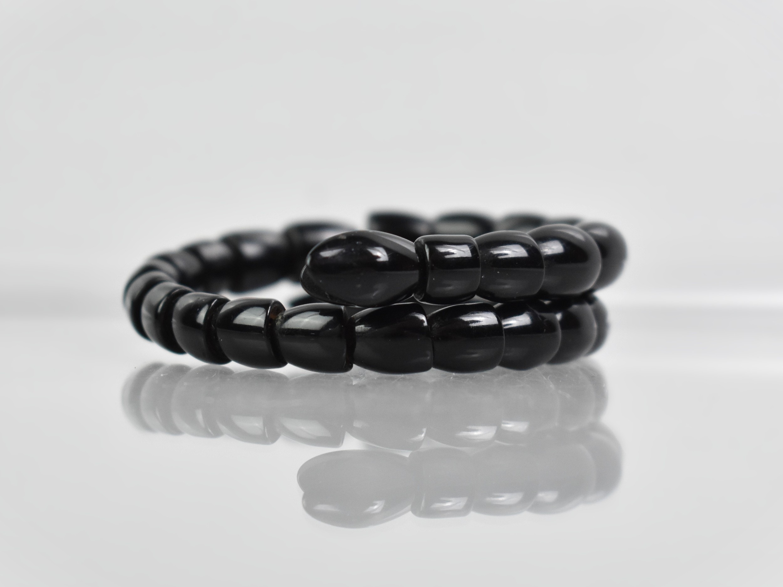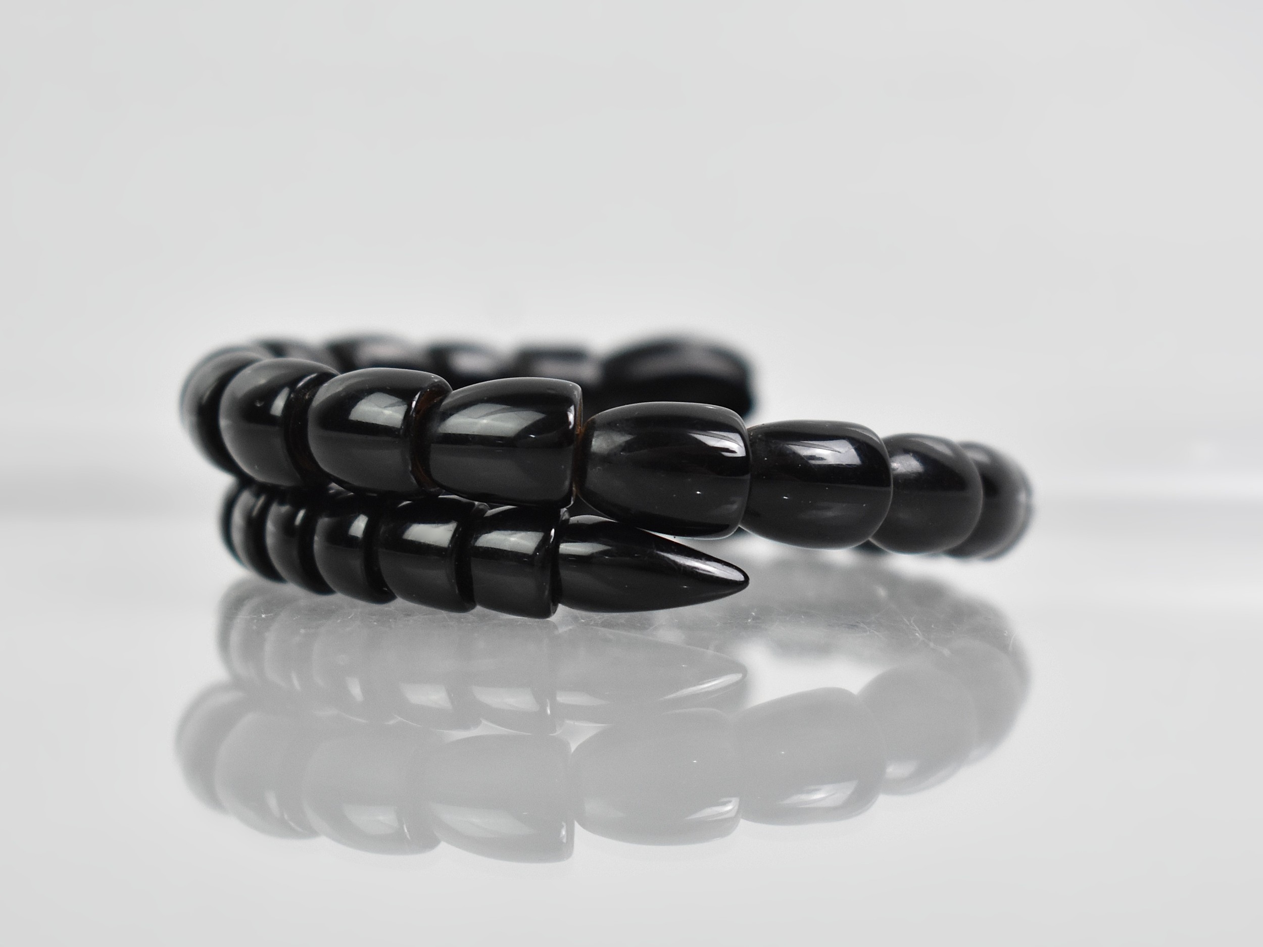 An Unusual Victorian Mourning Bracelet in the Form of a Coiled Snake, Modelled with Mouth Open and Having Articulated Body Formed with Graduated Conical Black Whitby Jet Style Beads on a Flattened Metal Band