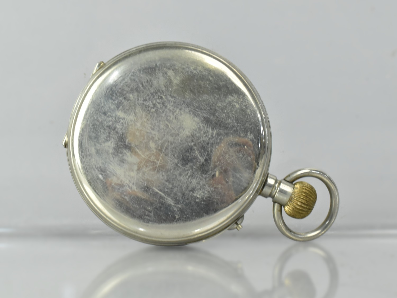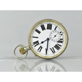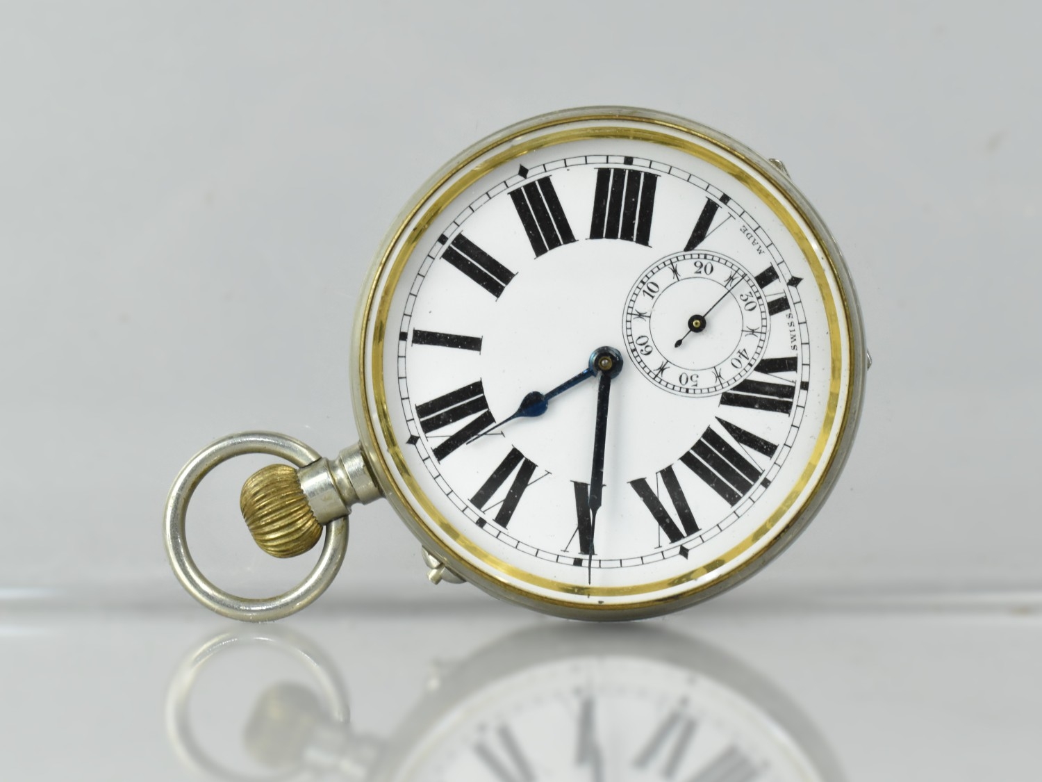 A Silver Plated Goliath Pocket Watch, White Enamelled Face having Roman Numerals, Blue Steel Hands and Subsidiary Dial, Swiss Made, Working Order