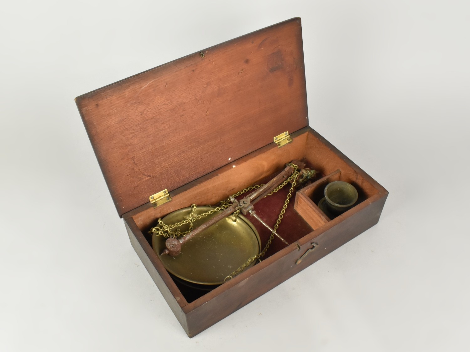 A 19th Century Mahogany Cased Set of Pan Scales with Two Wei...