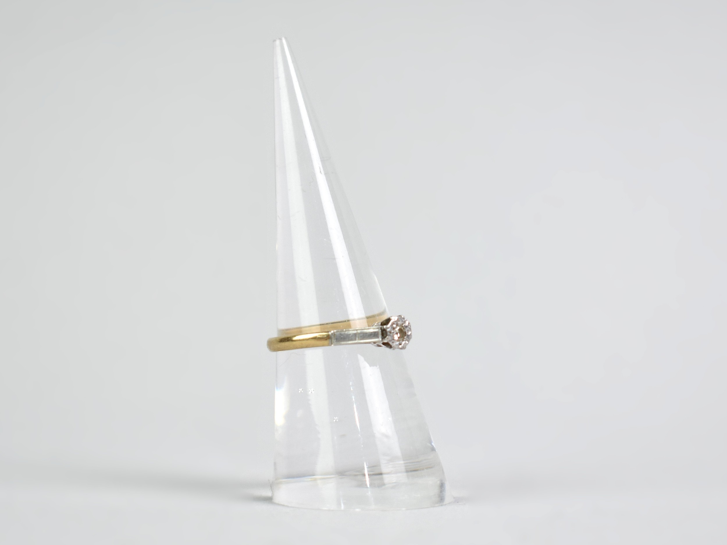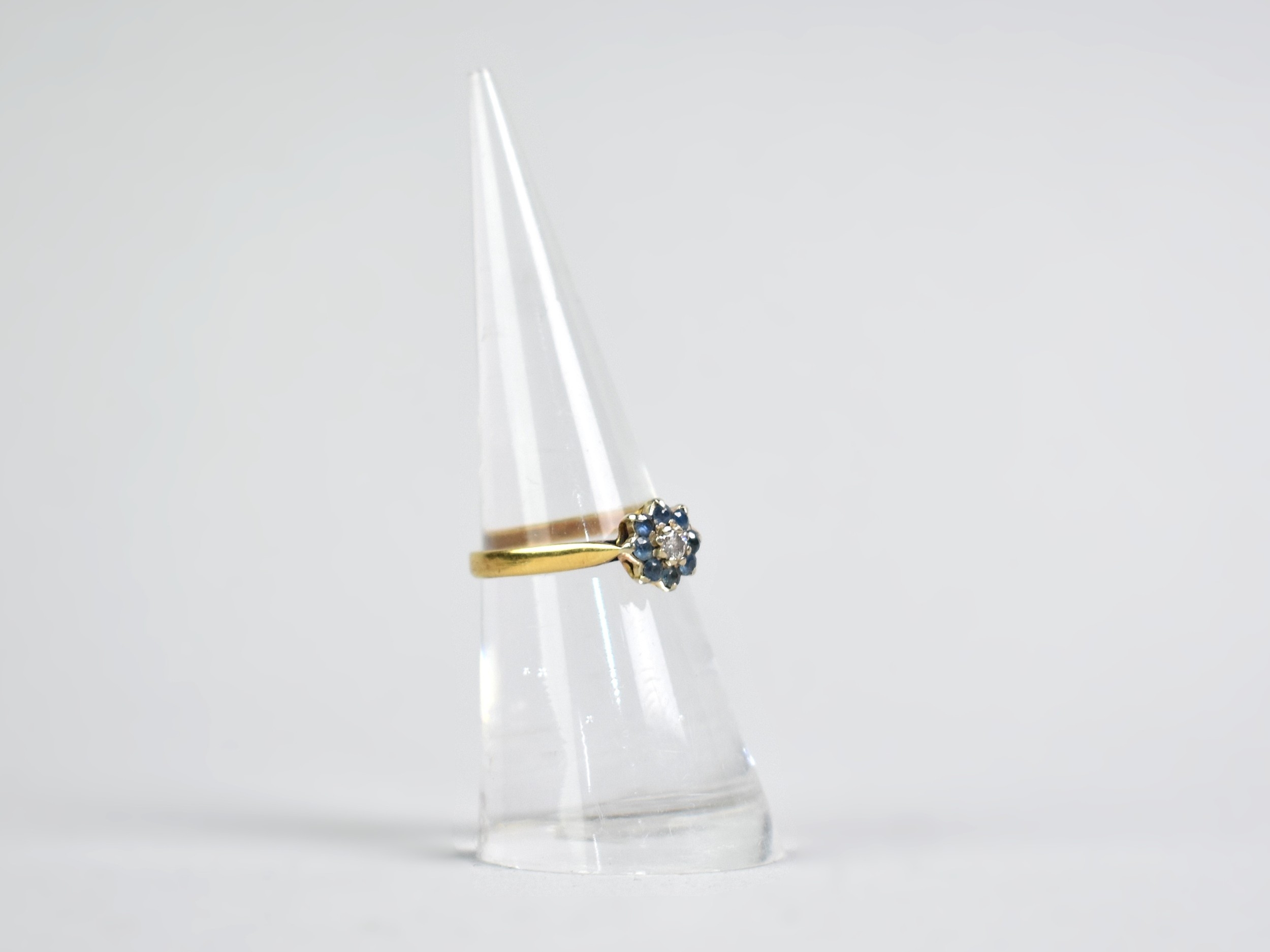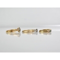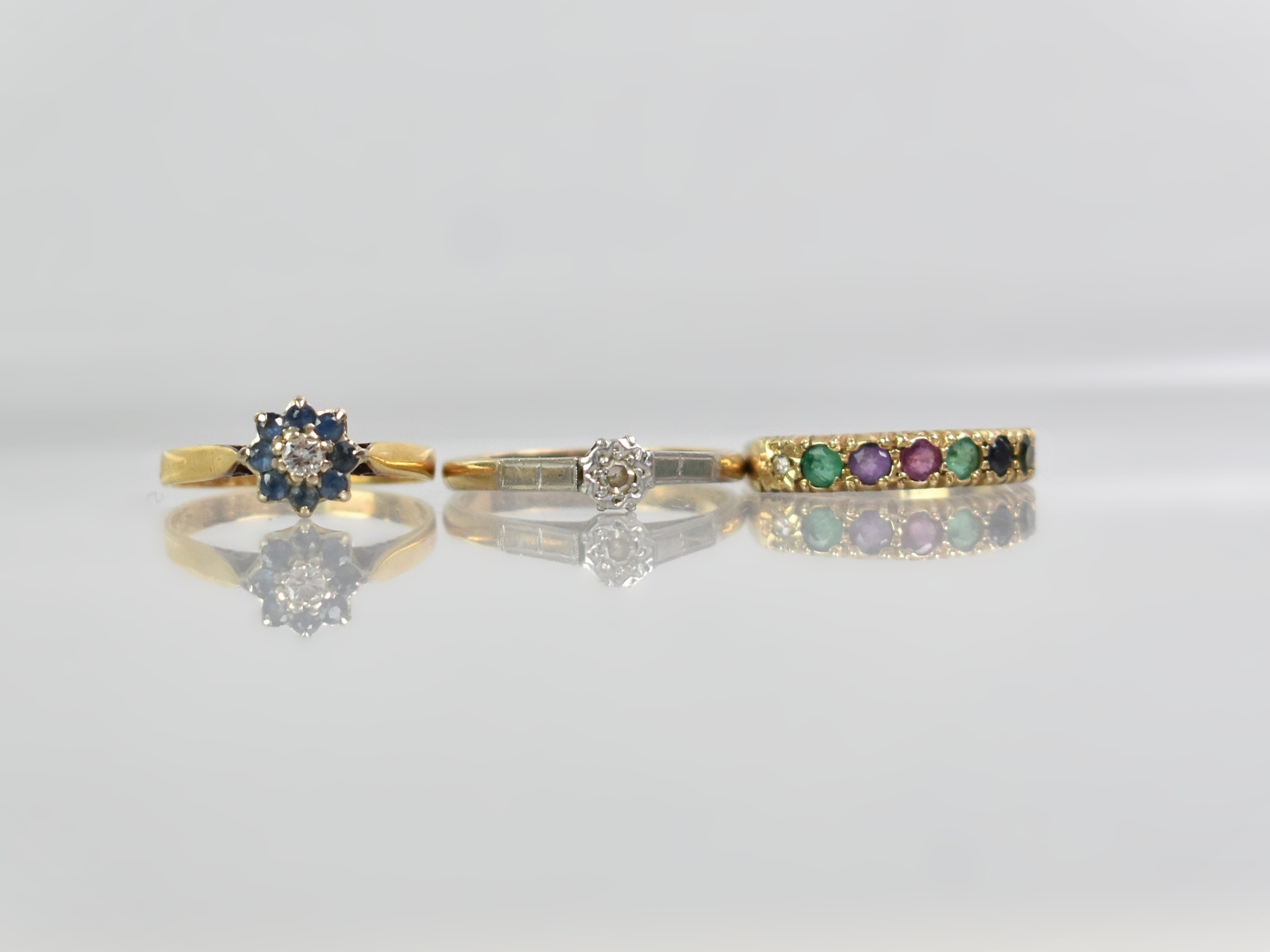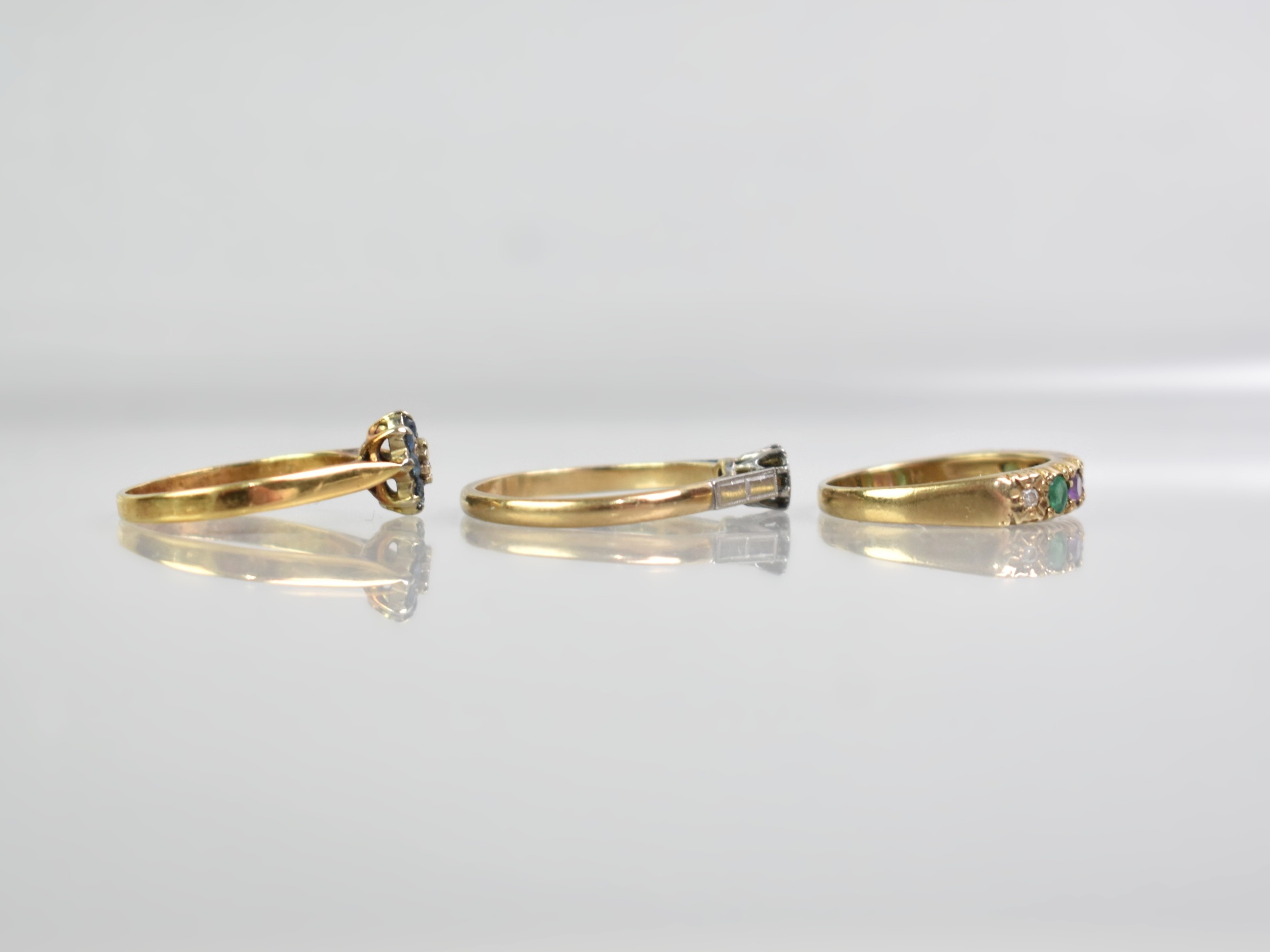 A Collection of Three Gold Rings to include 18ct Gold Diamond and Sapphire Ring, Size L.5, 2.2gms, a 9ct Gold and Platinum Diamond Mounted Solitaire Ring, Size O, 2.2gms and a 9ct Gold DEAREST Ring, Size K.5, 1.9gms,