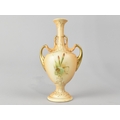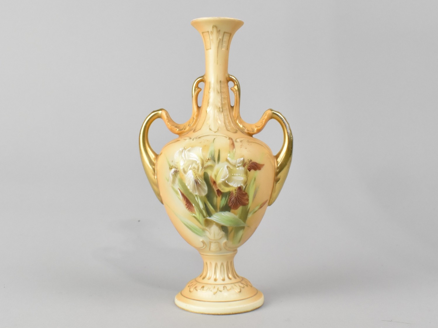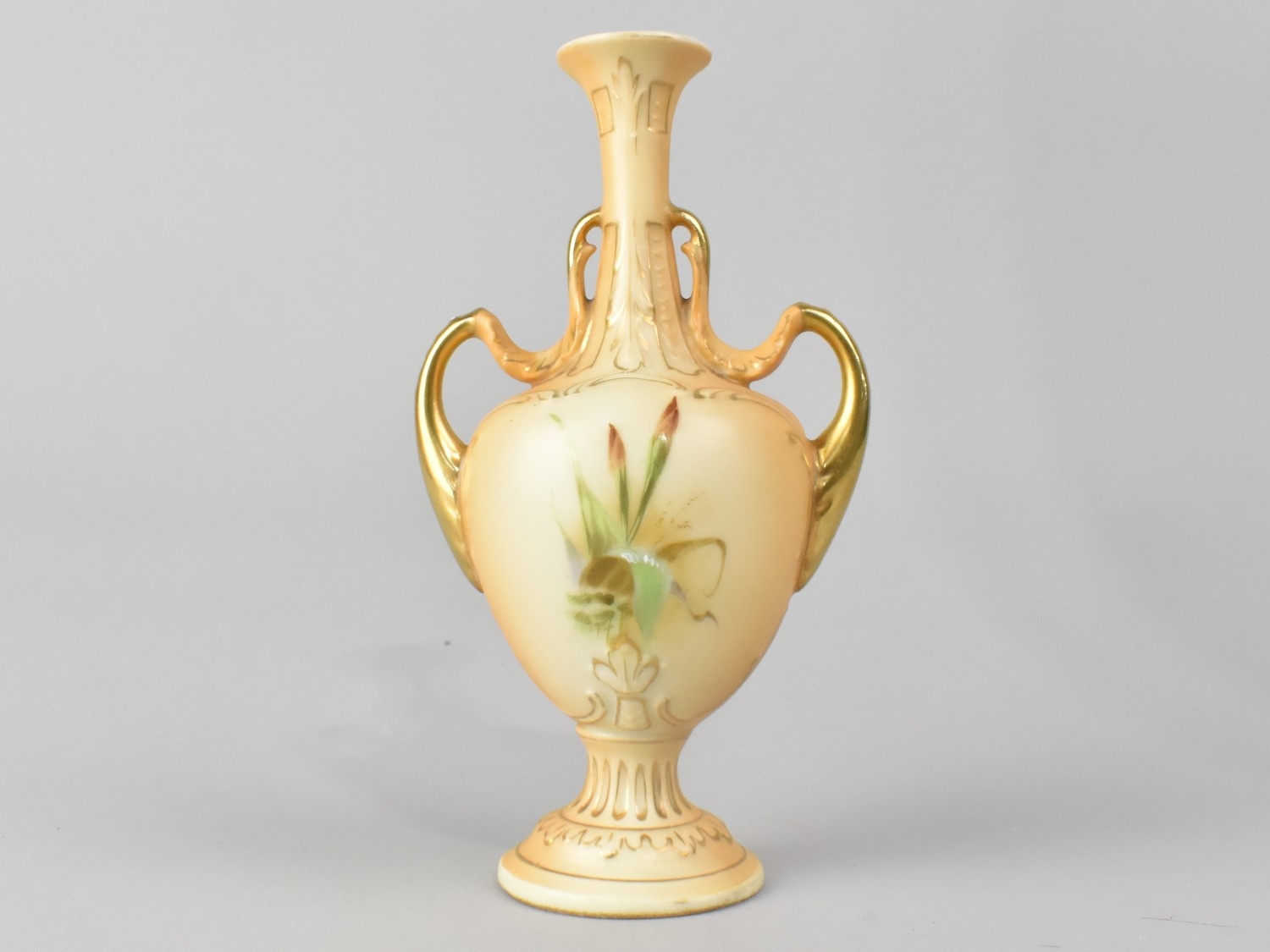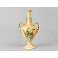 An Early 20th Century Blush Ivory Porcelain Double Handled Vase Hand Painted with Floral Decoration, 16cm high