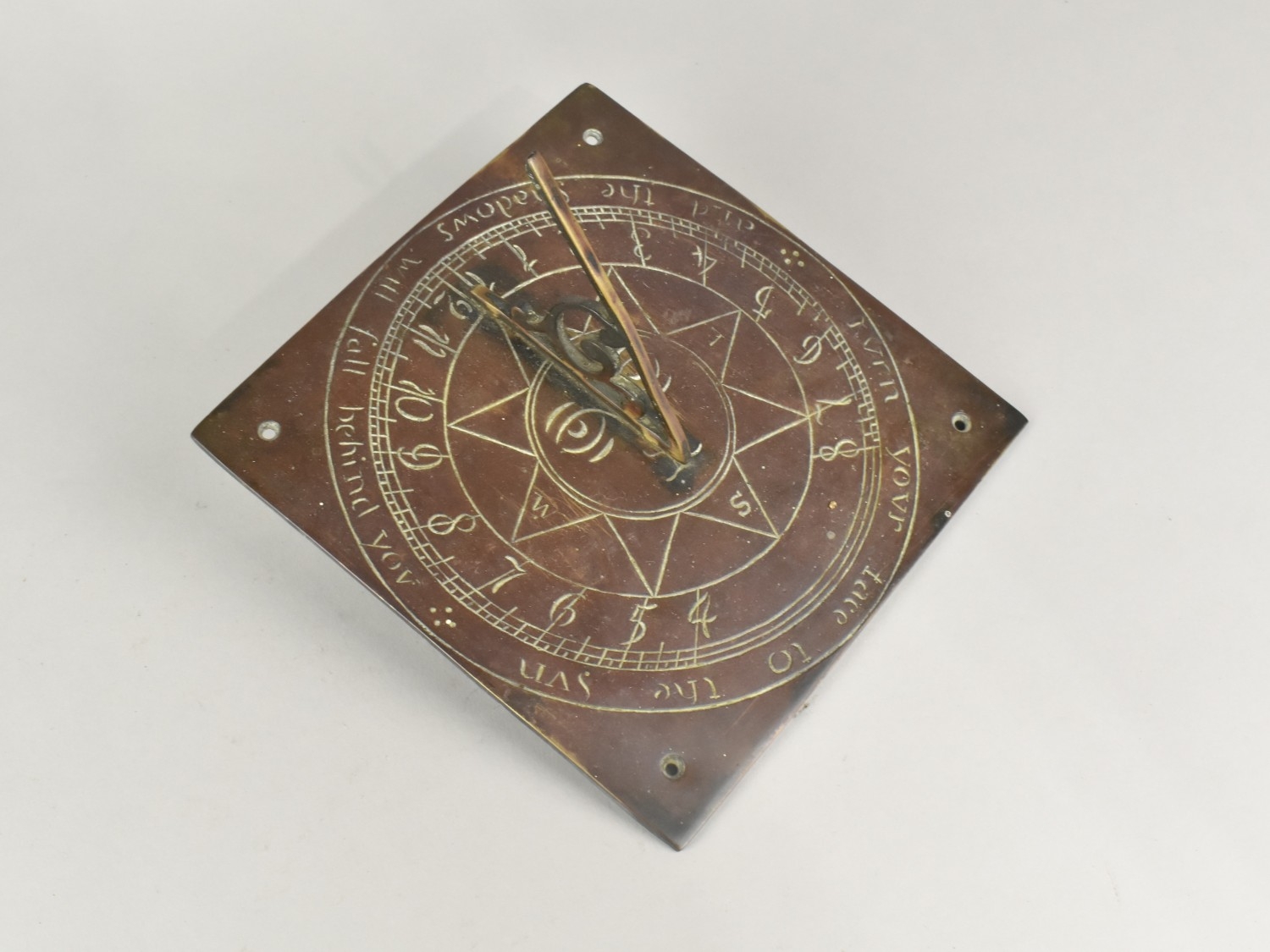 An Engraved Copper Sundial, 'Turn Your Face To The Sun and The Shadows Will Fall Behind You', 20cms Square