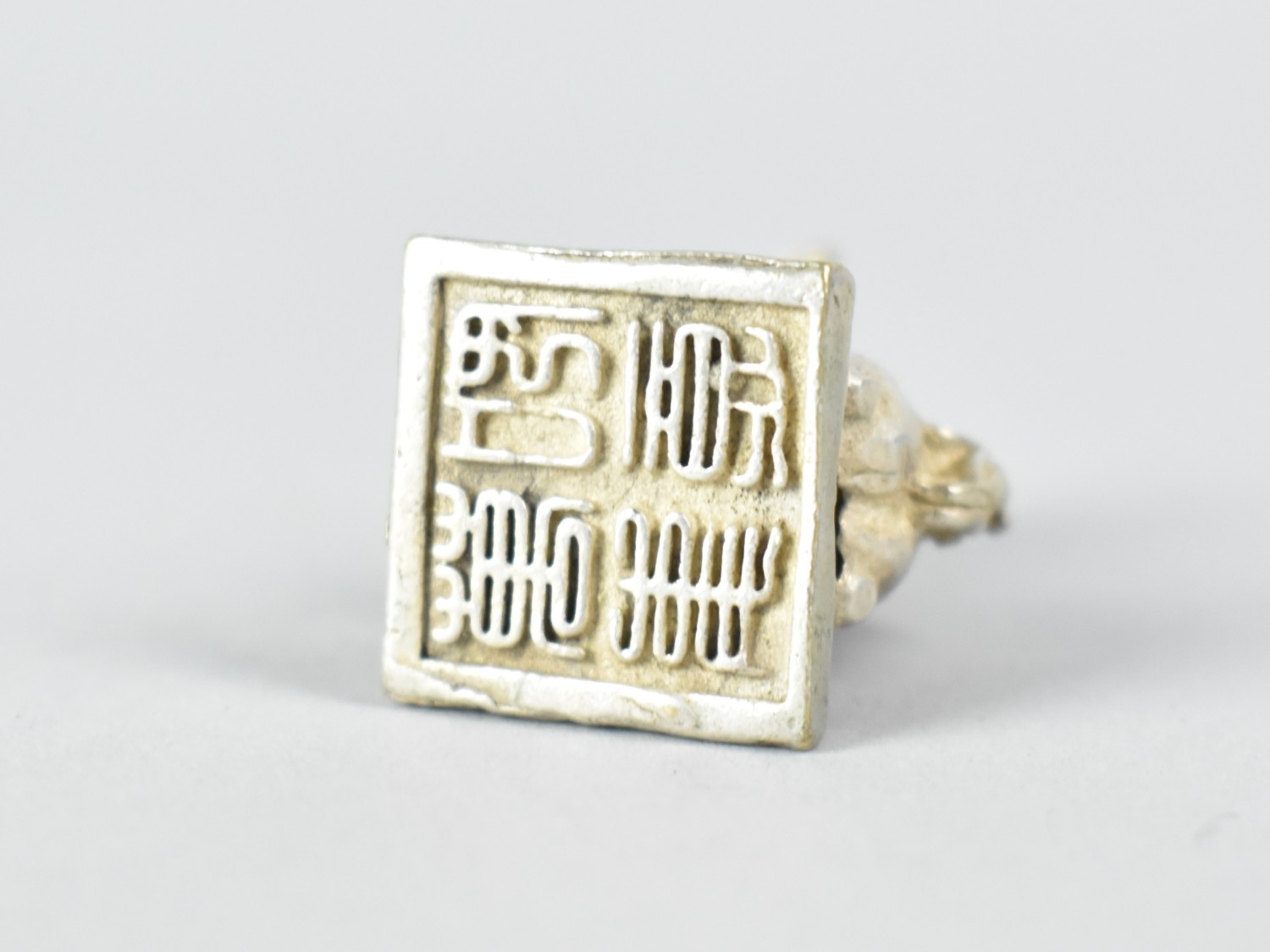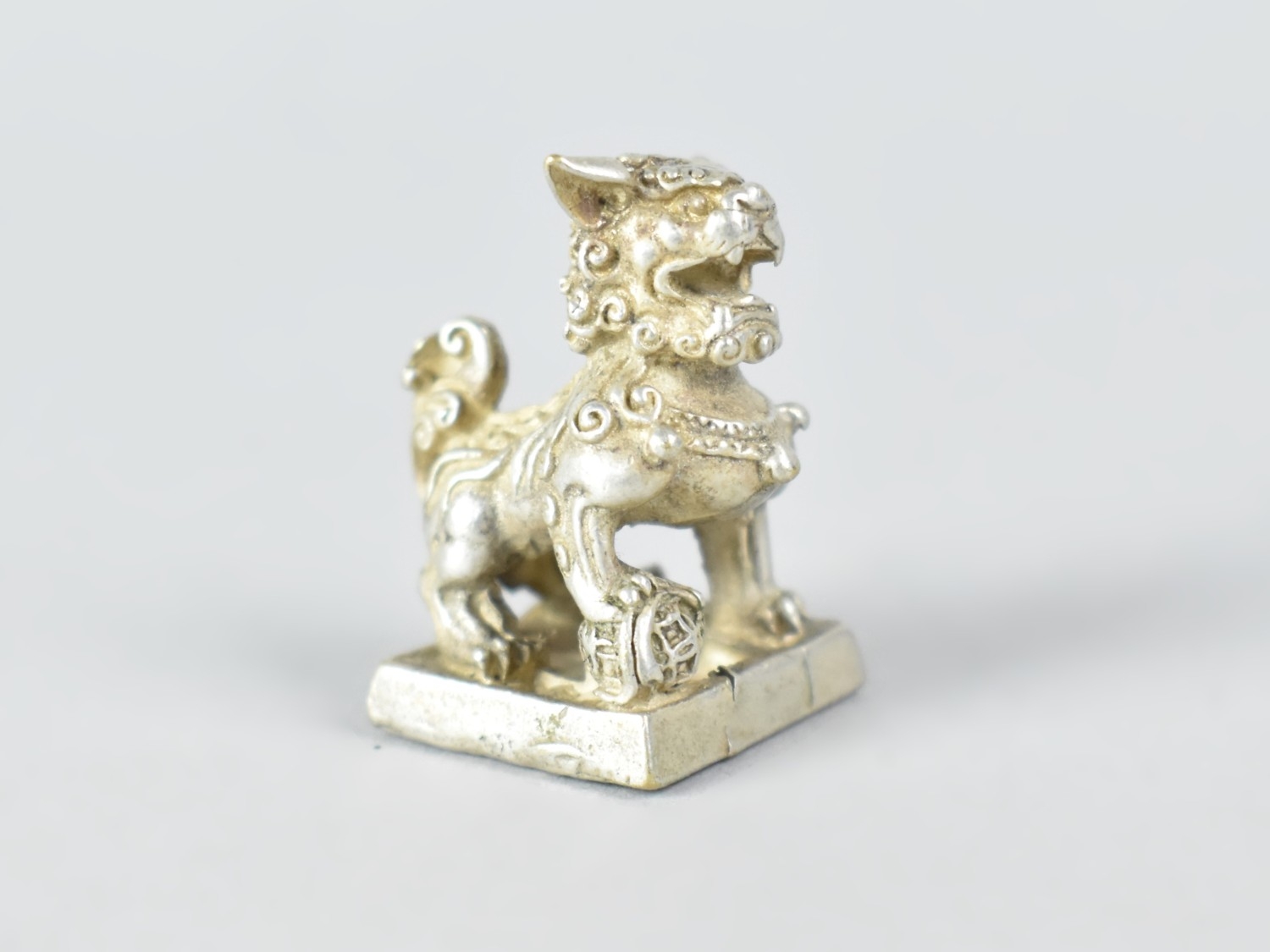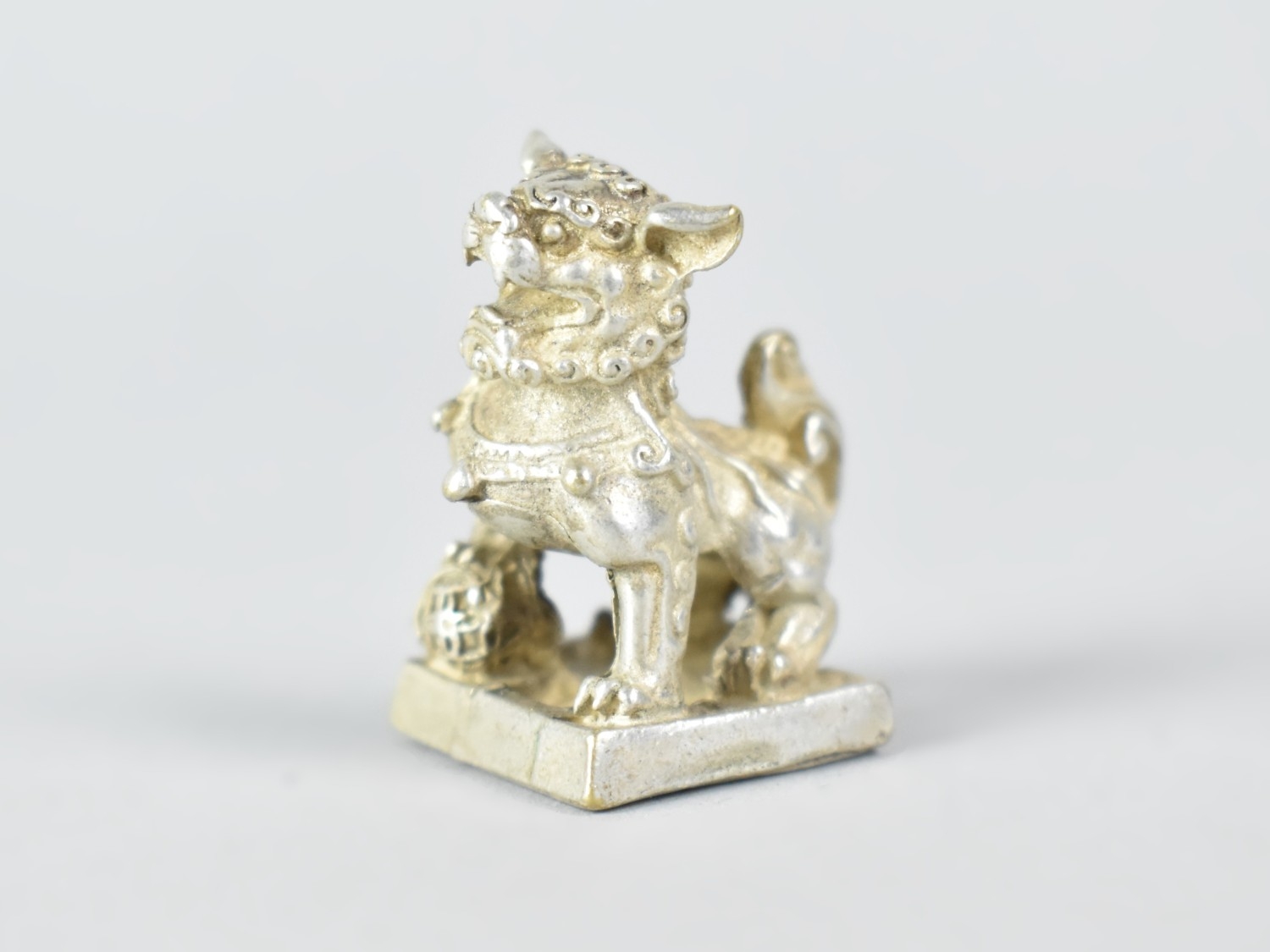 A Miniature Chinese White Metal Seal in the Form of a Temple Lion, 3cms High