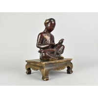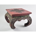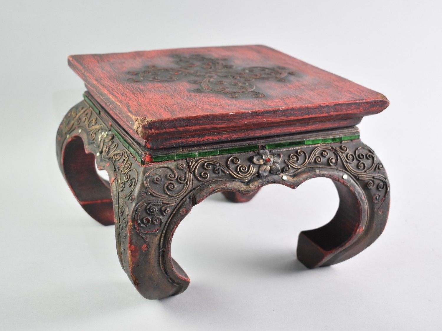 An Oriental Square Topped Vase Stand with Carved, painted and Jewelled Decoration, 27cms Square and 20cms High