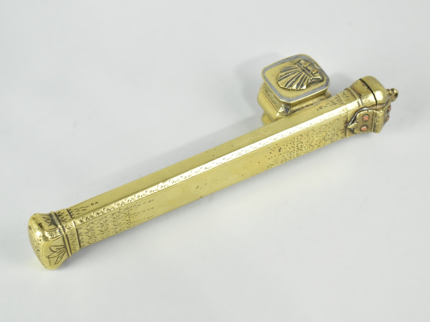 A 19th Century Persian/Turkish Ottoman Qalamdan (Traditional Scribe's Travelling Pen Case and Ink Well), 23cms Long