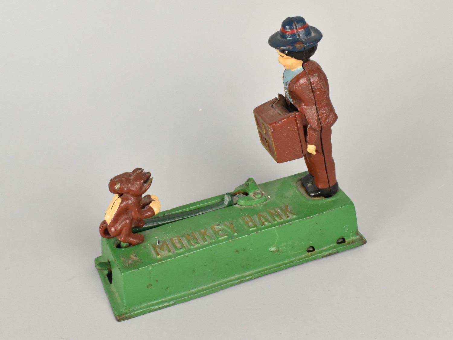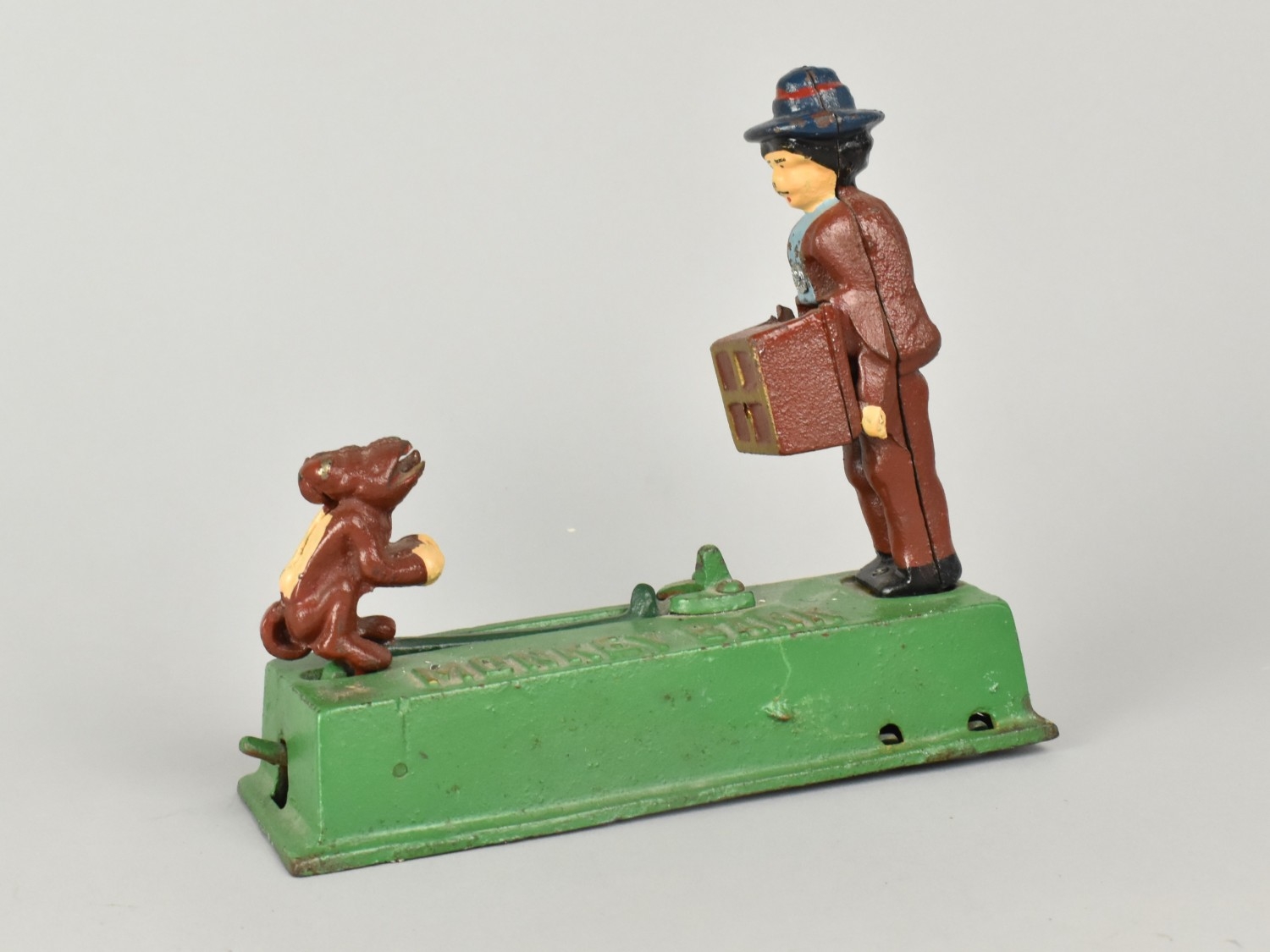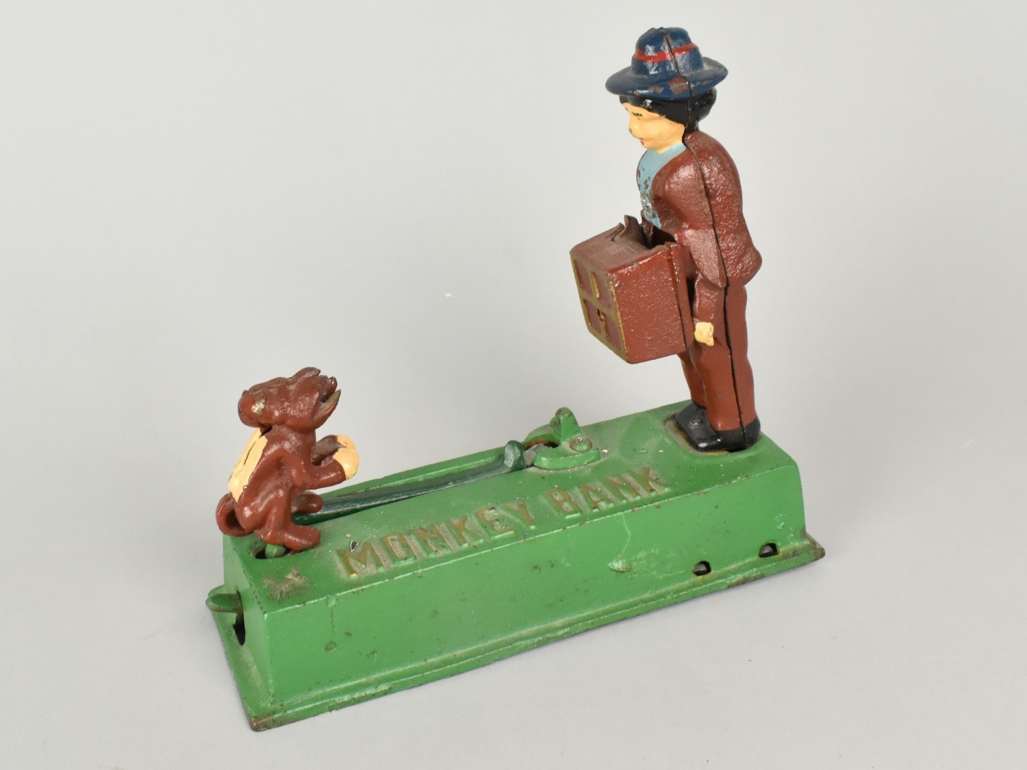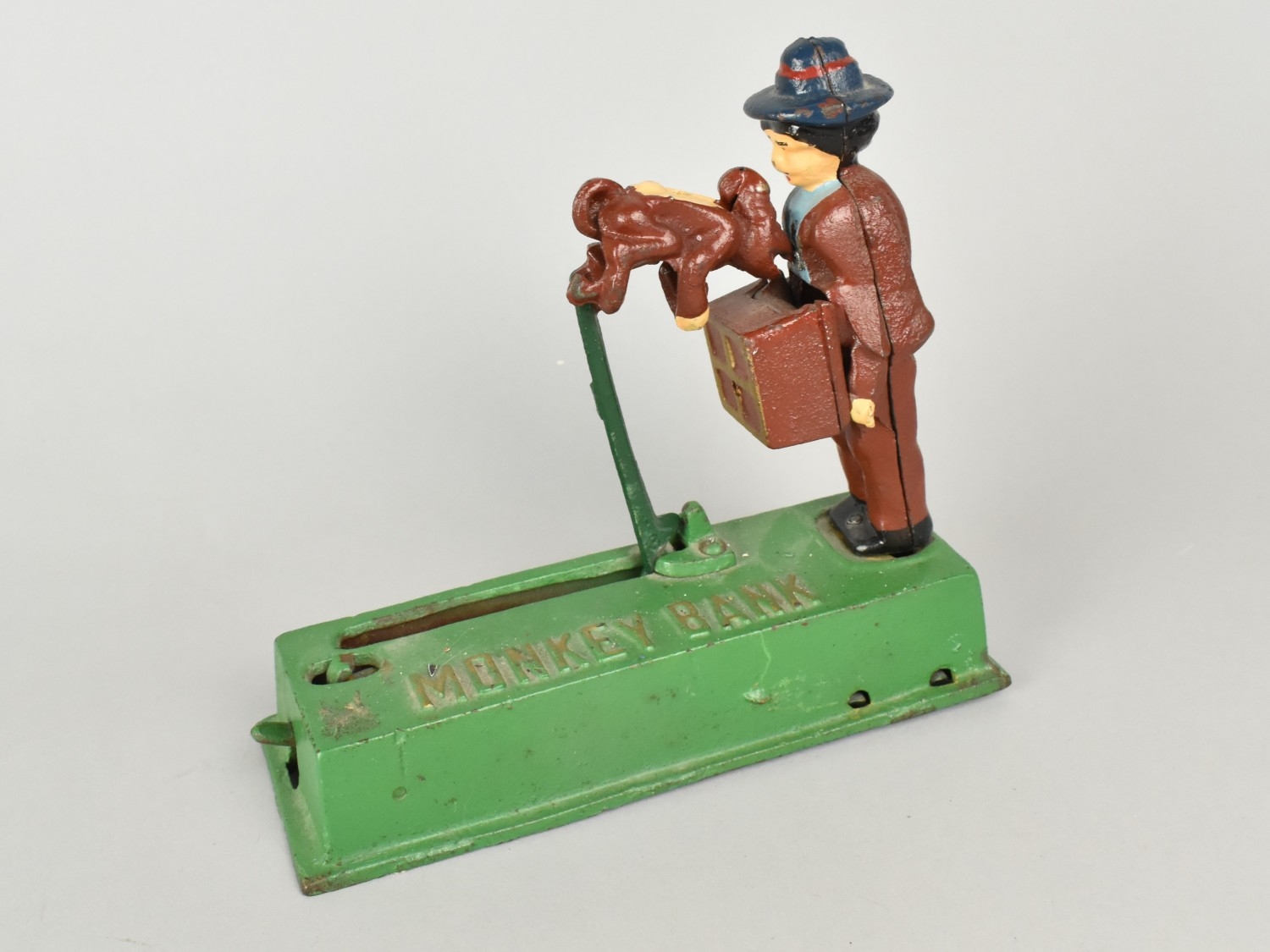 A Reproduction Cast Iron American Novelty Money Bank, 'The Monkey Bank', Working Order, 19cms Wide
