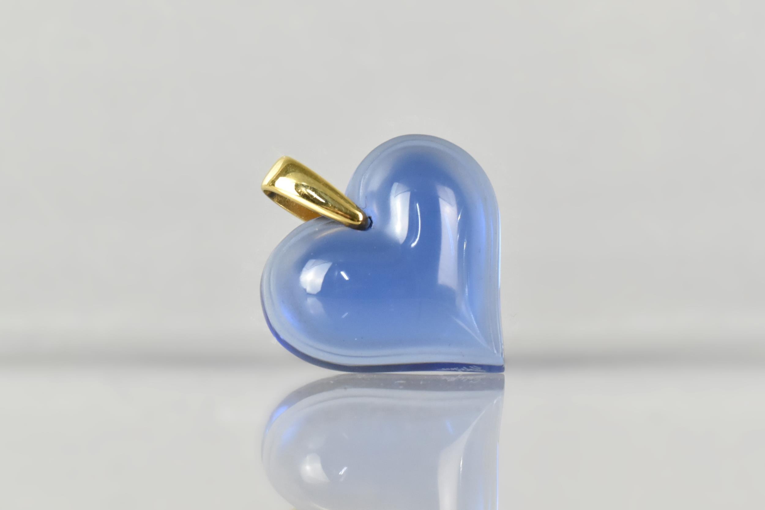A Contemporary Lalique Pendant, Cabochon Heart, Or Coeur, in Blue Glass, Signed Verso, 32.4mm Wide and 39.4mm including Gilt Metal Bale