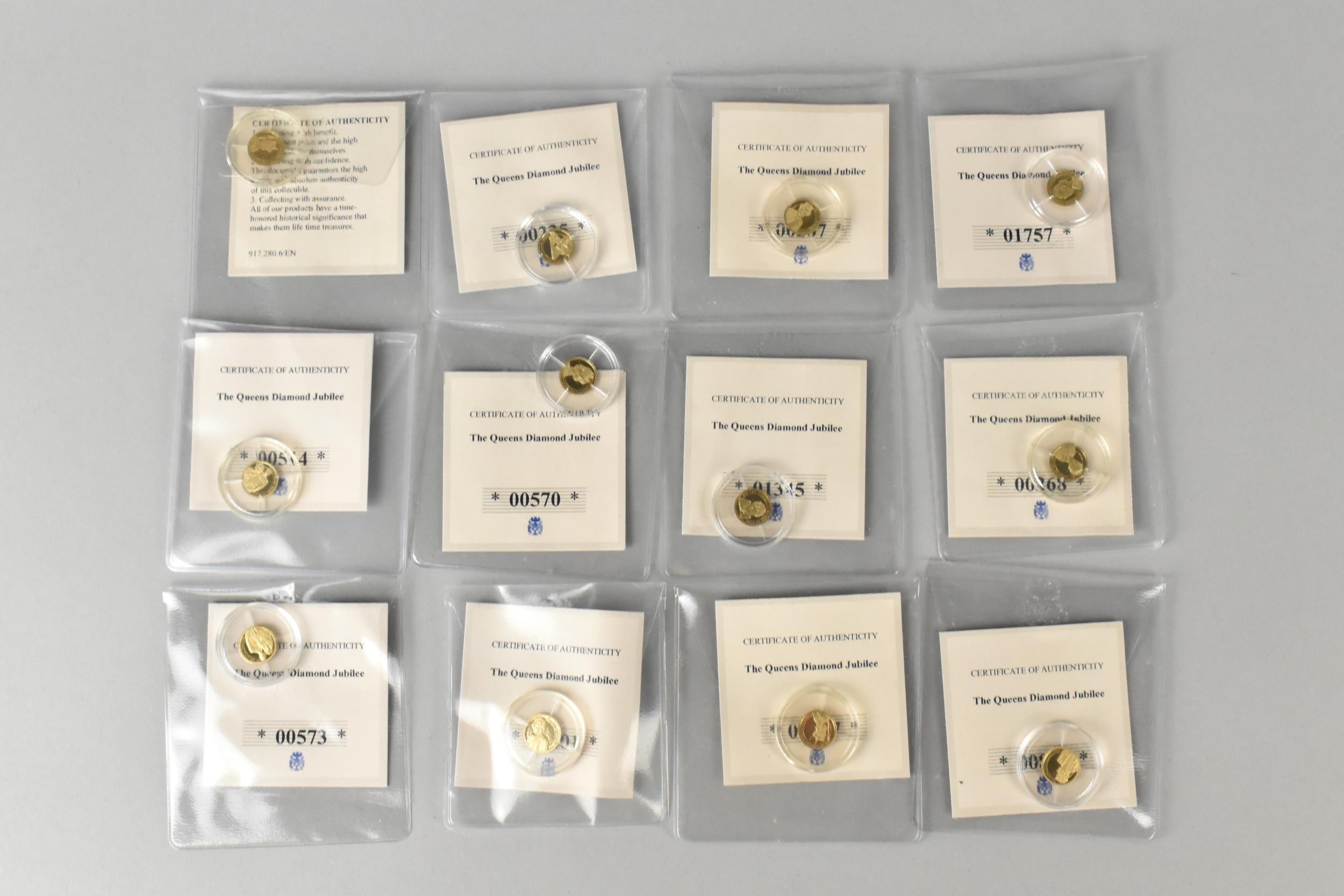 A Set of Twelve "The Queens Diamond Jubilee" 14ct Gold Coins, Each 11mm and 0.5gms