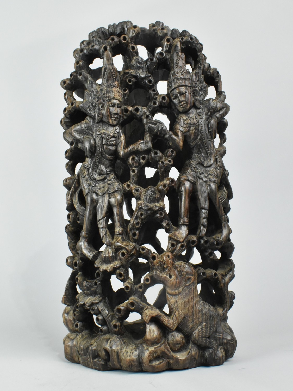 An Indonesian (Balinese) Sawo Wood Carving Depicting Scene from The Hindu Epic The Ramayana, 36cms High