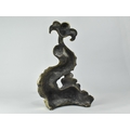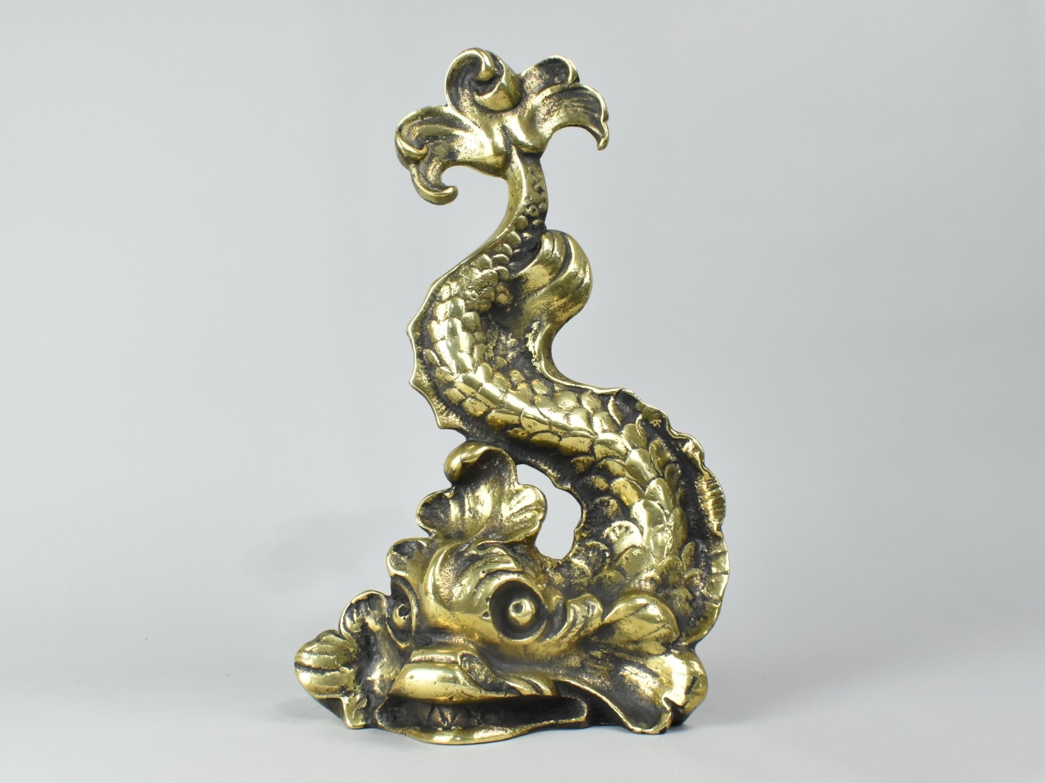 A Victorian Cast Brass Door Porter in the Form of a Classical Dolphin, 35cms High