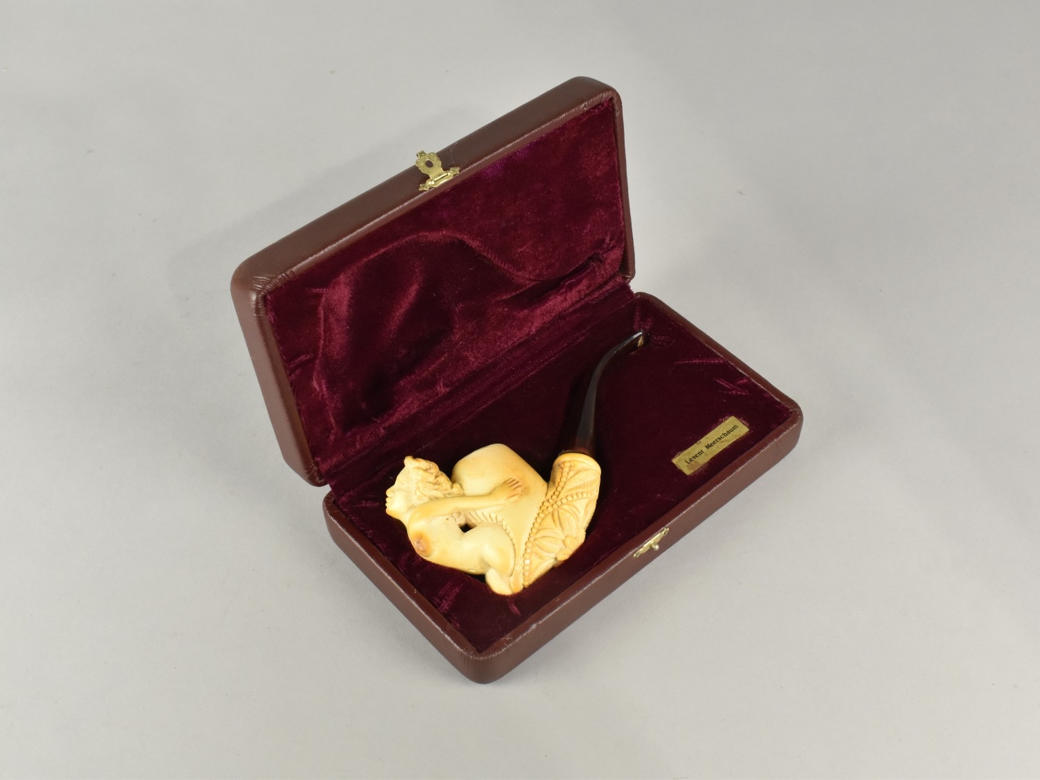 A Mid 20th Century Cased Carved Levent Meerschaum Pipe, Nude