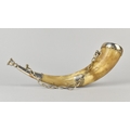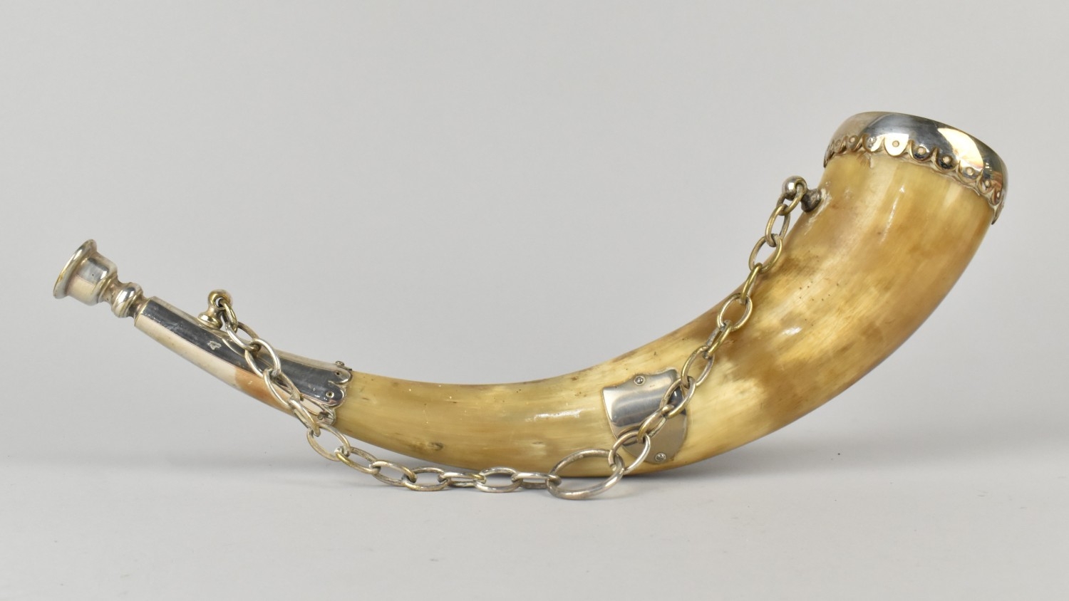 A Silver Plate Mounted Hunting Horn with Hanging Chain, 36cm...