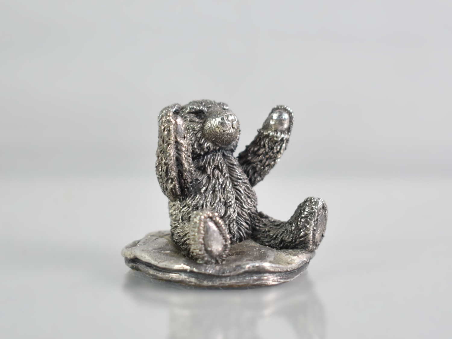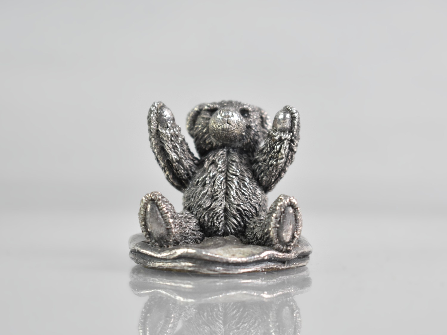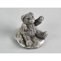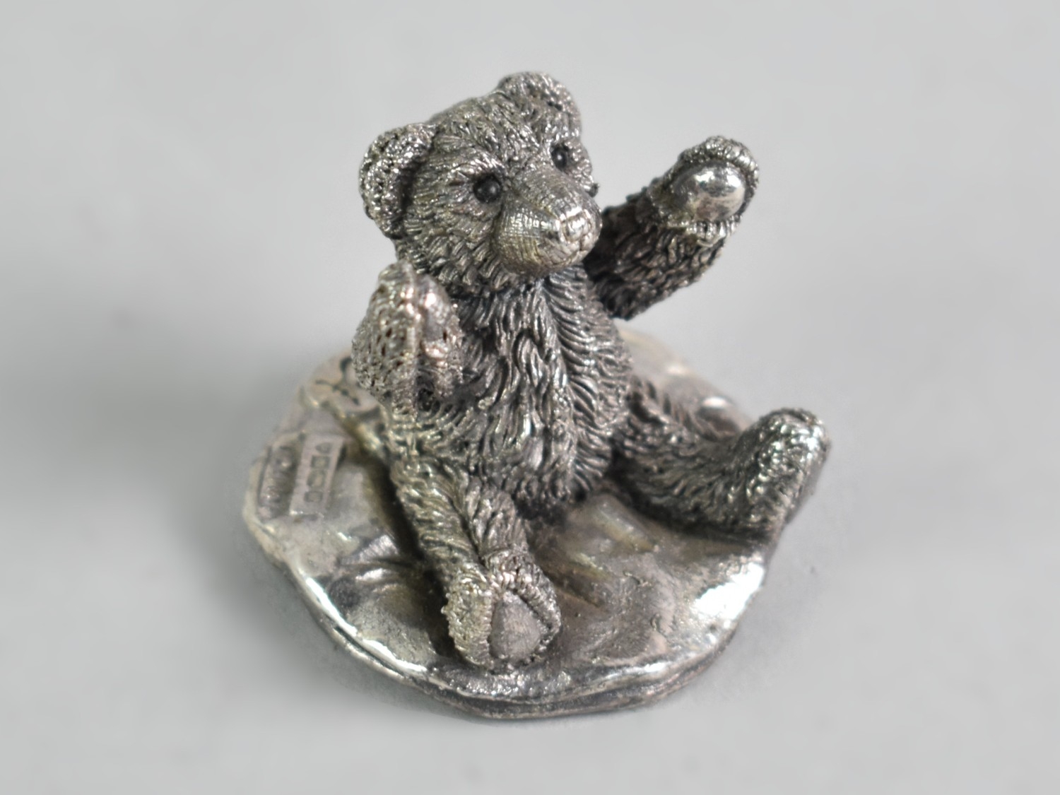 Miniature Sterling Silver Teddy Bear on Cushion, 3cm High.
