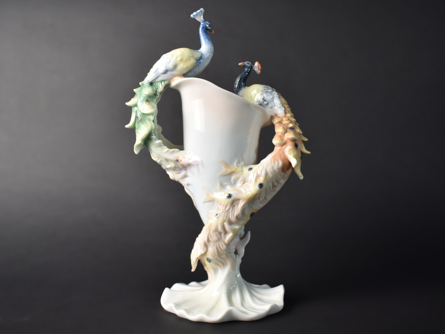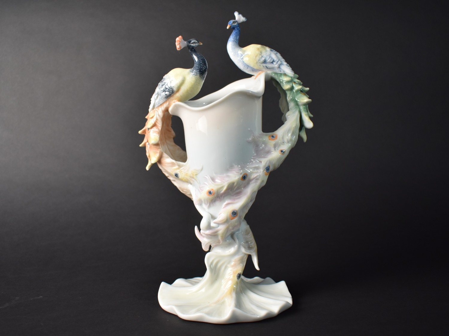 A Unicorn Studio Porcelain Peacock Vase, 29cm high