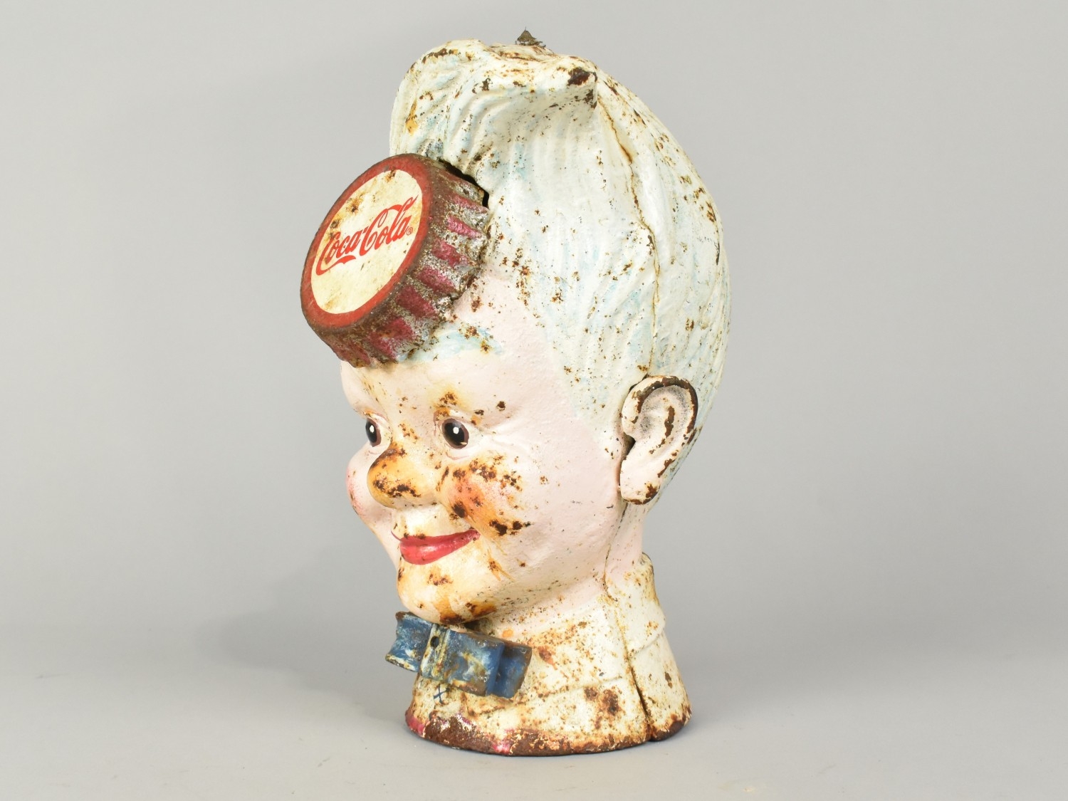 A Cold Painted Cast Metal Novelty Coca-Cola Money Bank, 20cm...