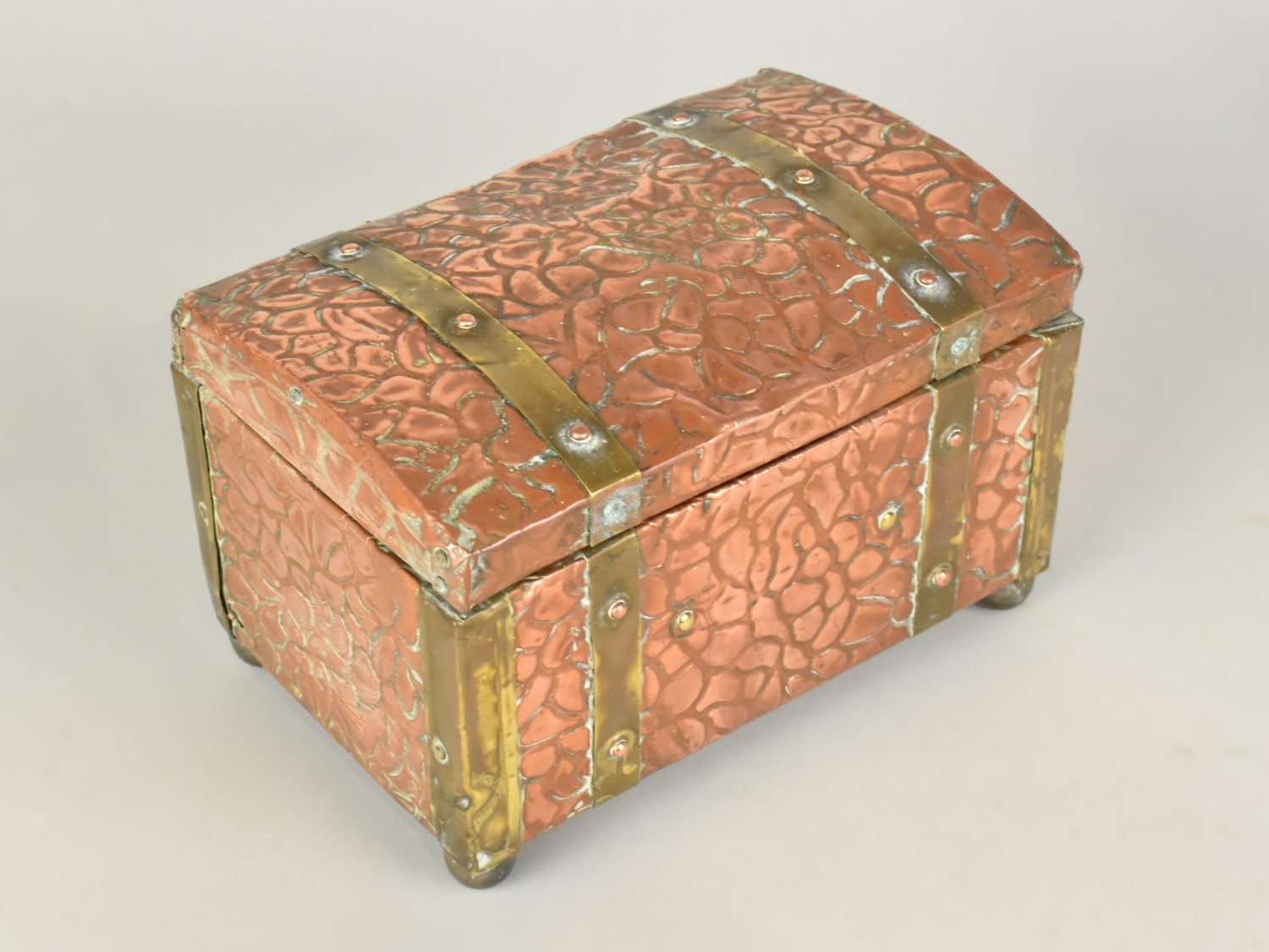 A Brass and Copper Arched Top Casket in the Form of a Strong...