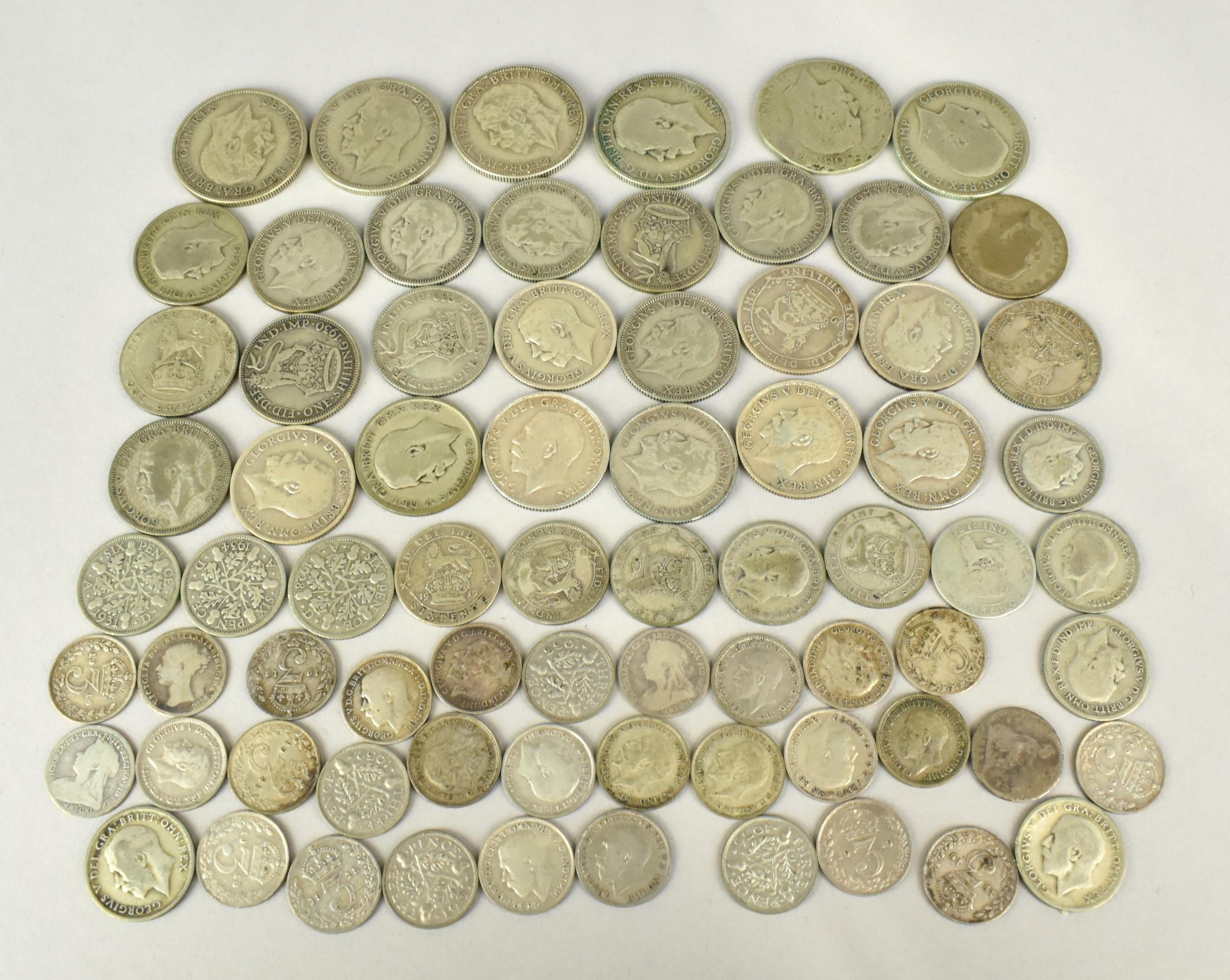 A Collection of George V Silver Coinage to Include Florins, Shillings, Sixpence and Threepence Together with Some Victorian Threepence Coins