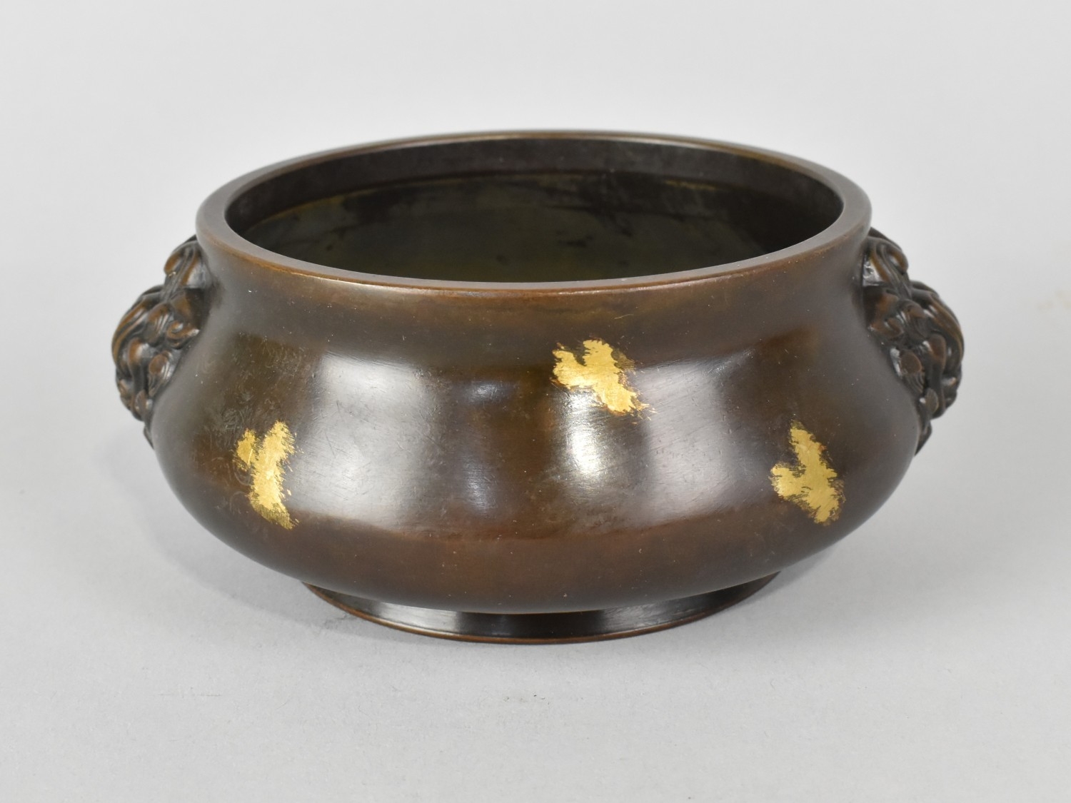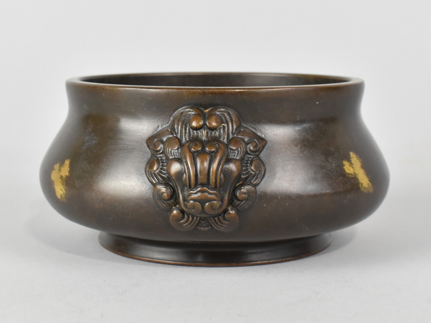 A Reproduction Chinese Bronze Gold Splash Censer, 14x6cms High