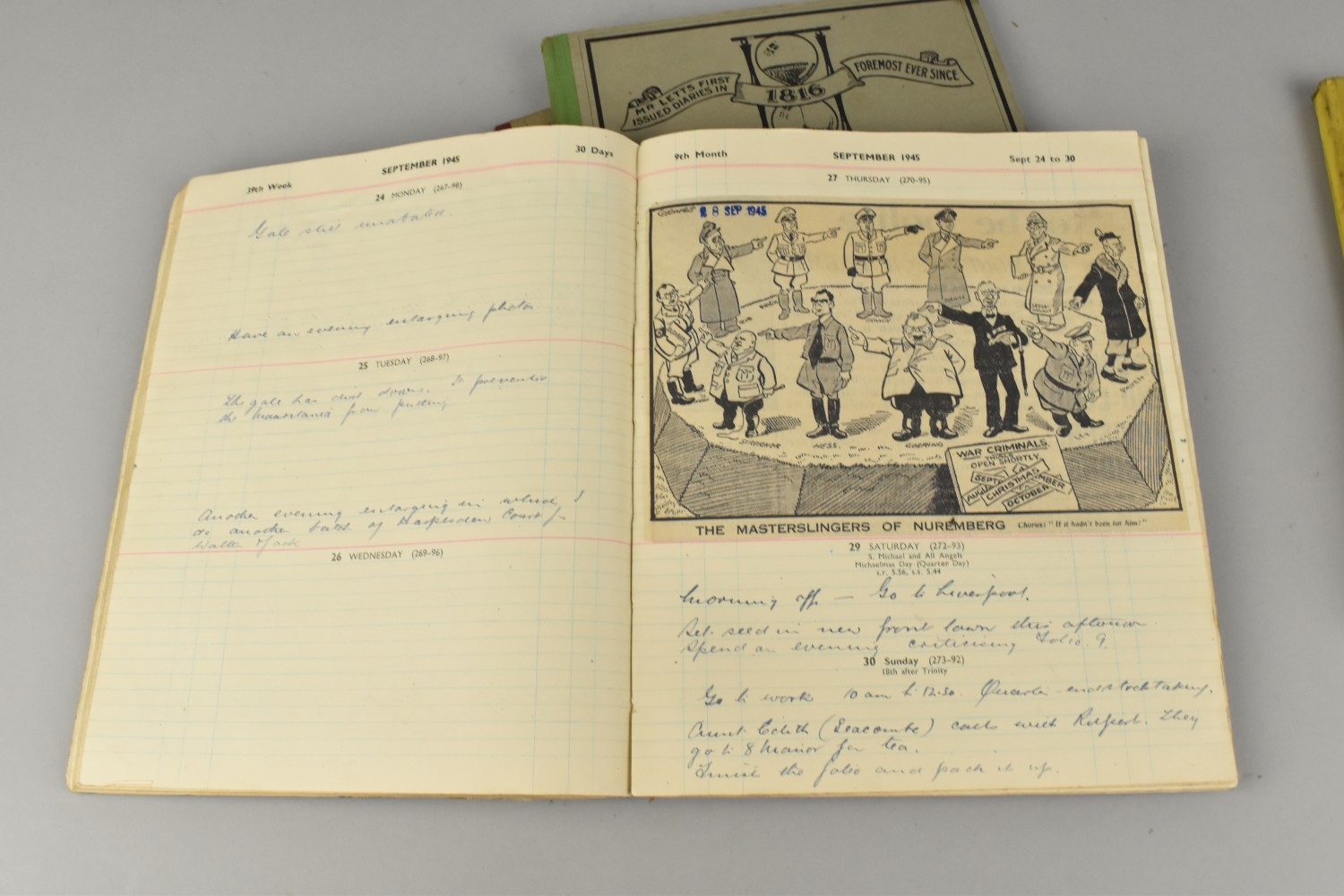 A Collection of 1940s WWII Diaries with Entries and Newspaper Cuttings by R Gilbert Jones, Wirral