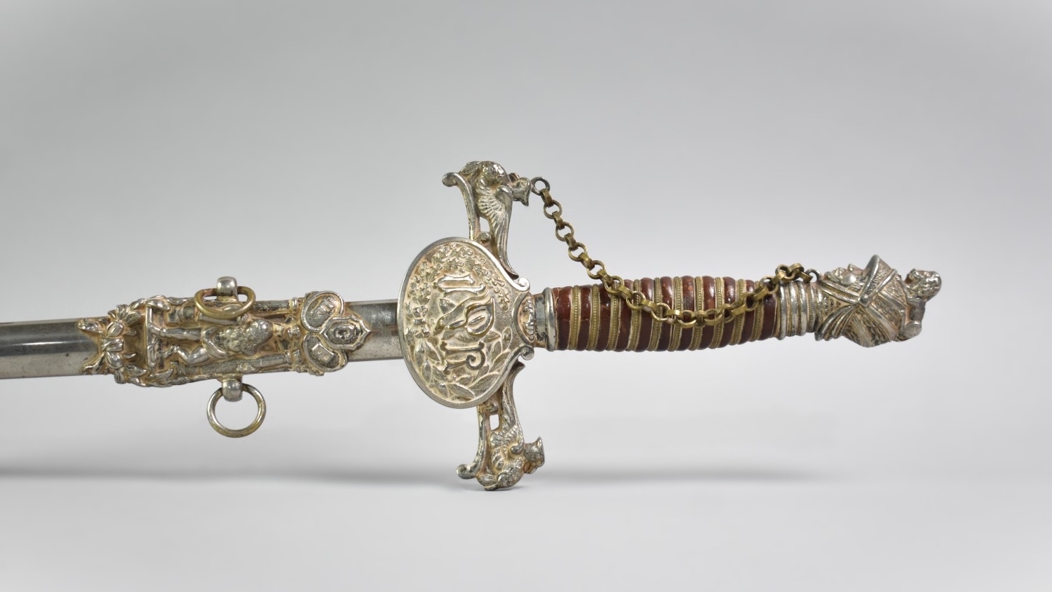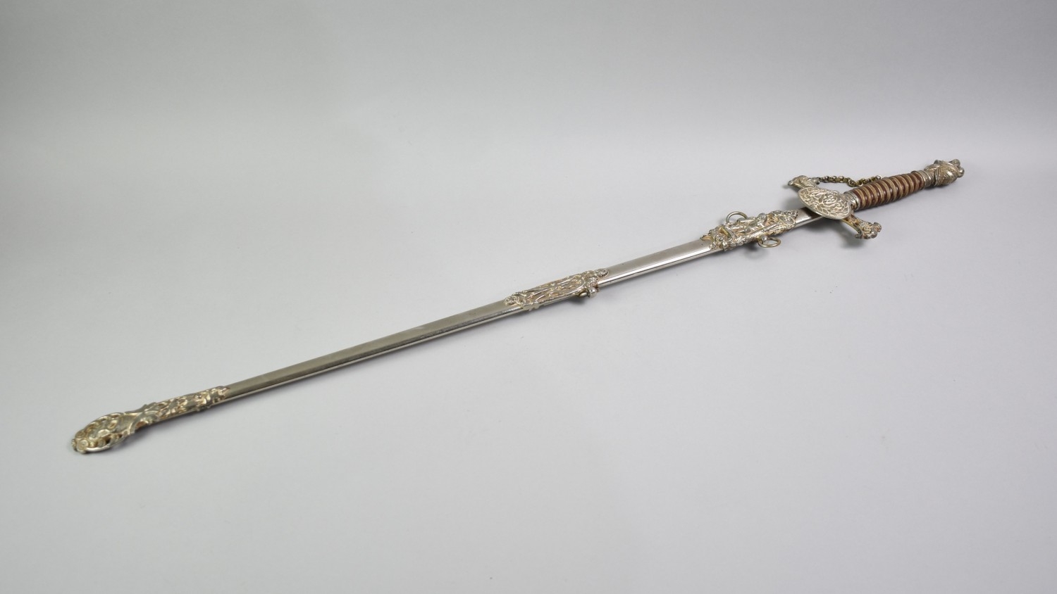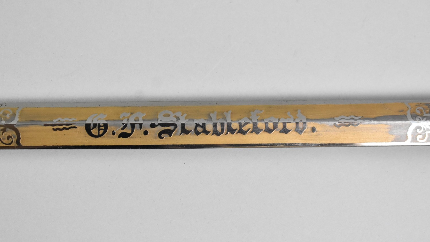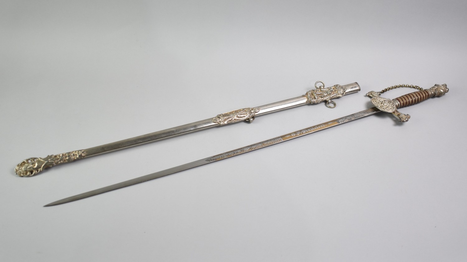 An American Knights of Pythias FCB (Friendship Charity Benevolence) Ceremonial Sword and Scabbard by the Cincinnati Regalia Co, the blade inscribed for GF Stapleford.