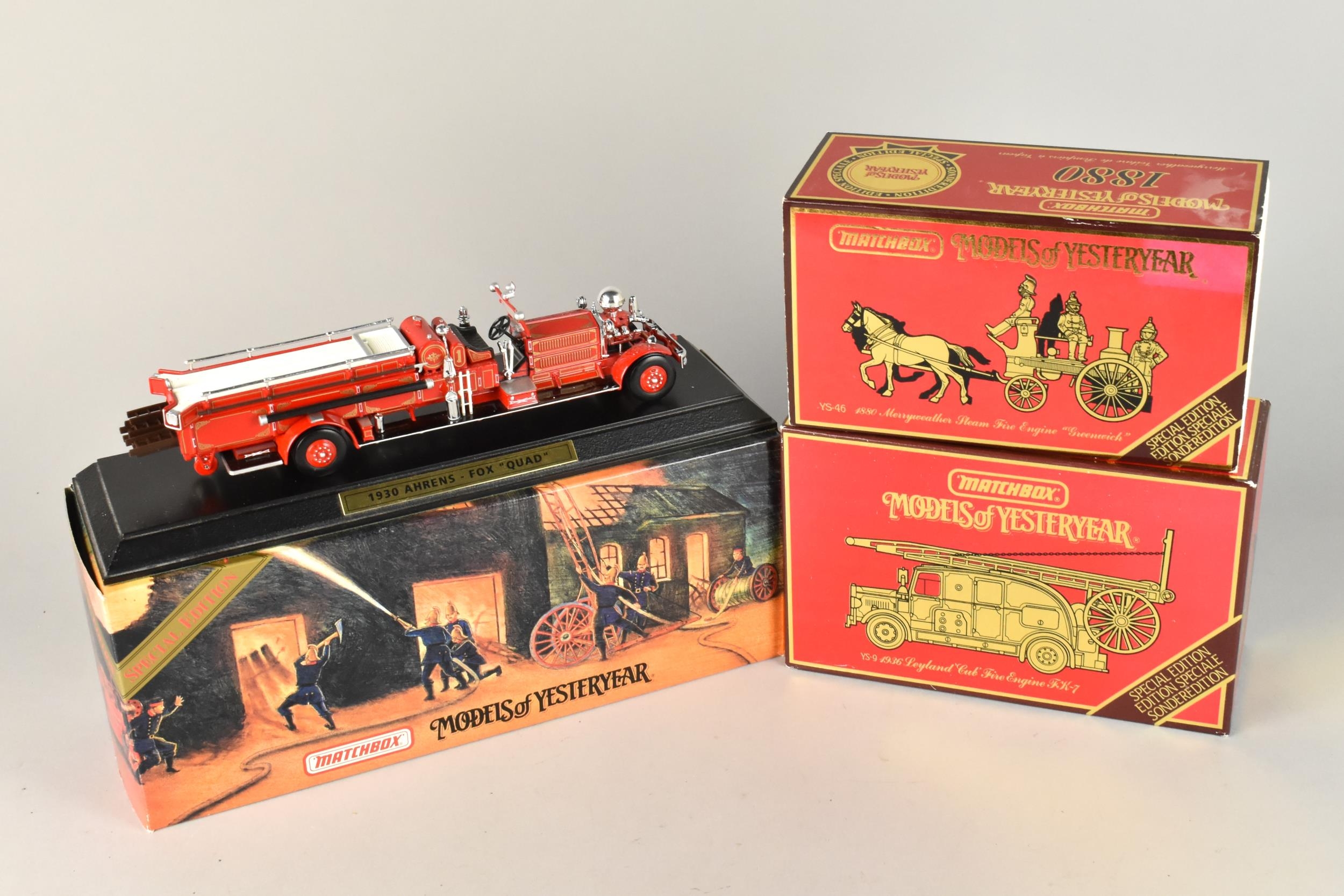 A Collection of Three Boxed Matchbox Models of Yesteryear Fire Engines
