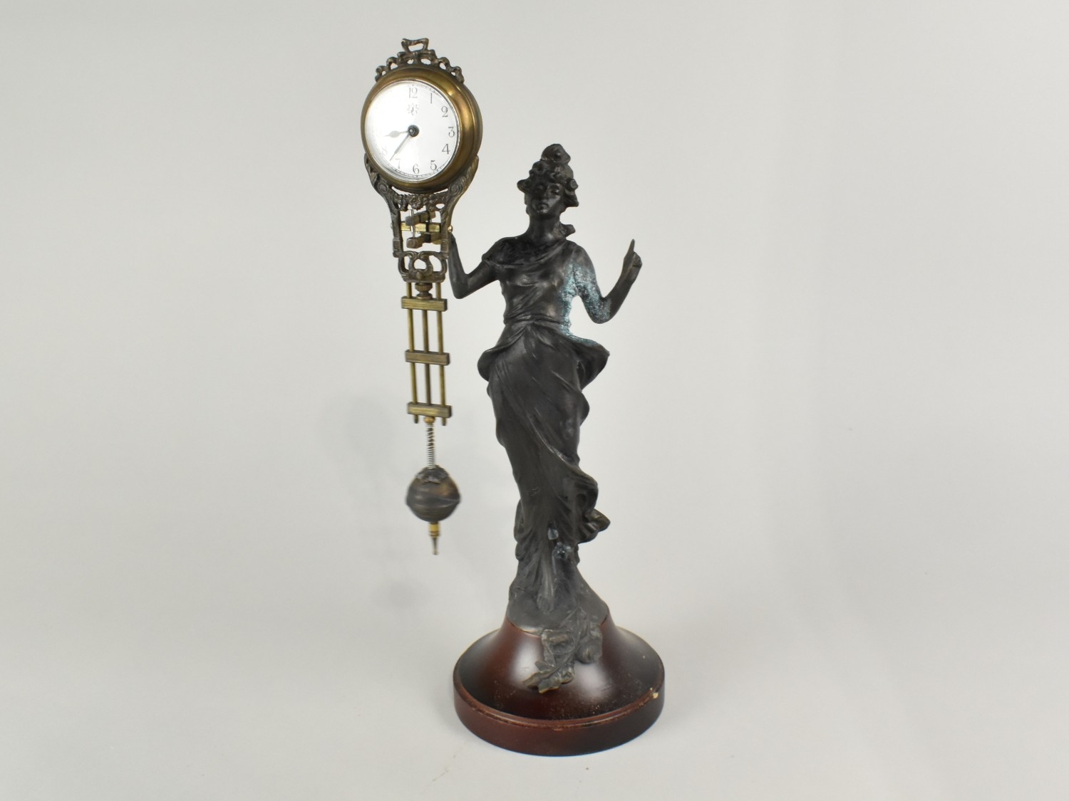 A Reproduction Bronze Effect Art Nouveau Style Mystery Clock, 34cms High