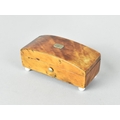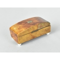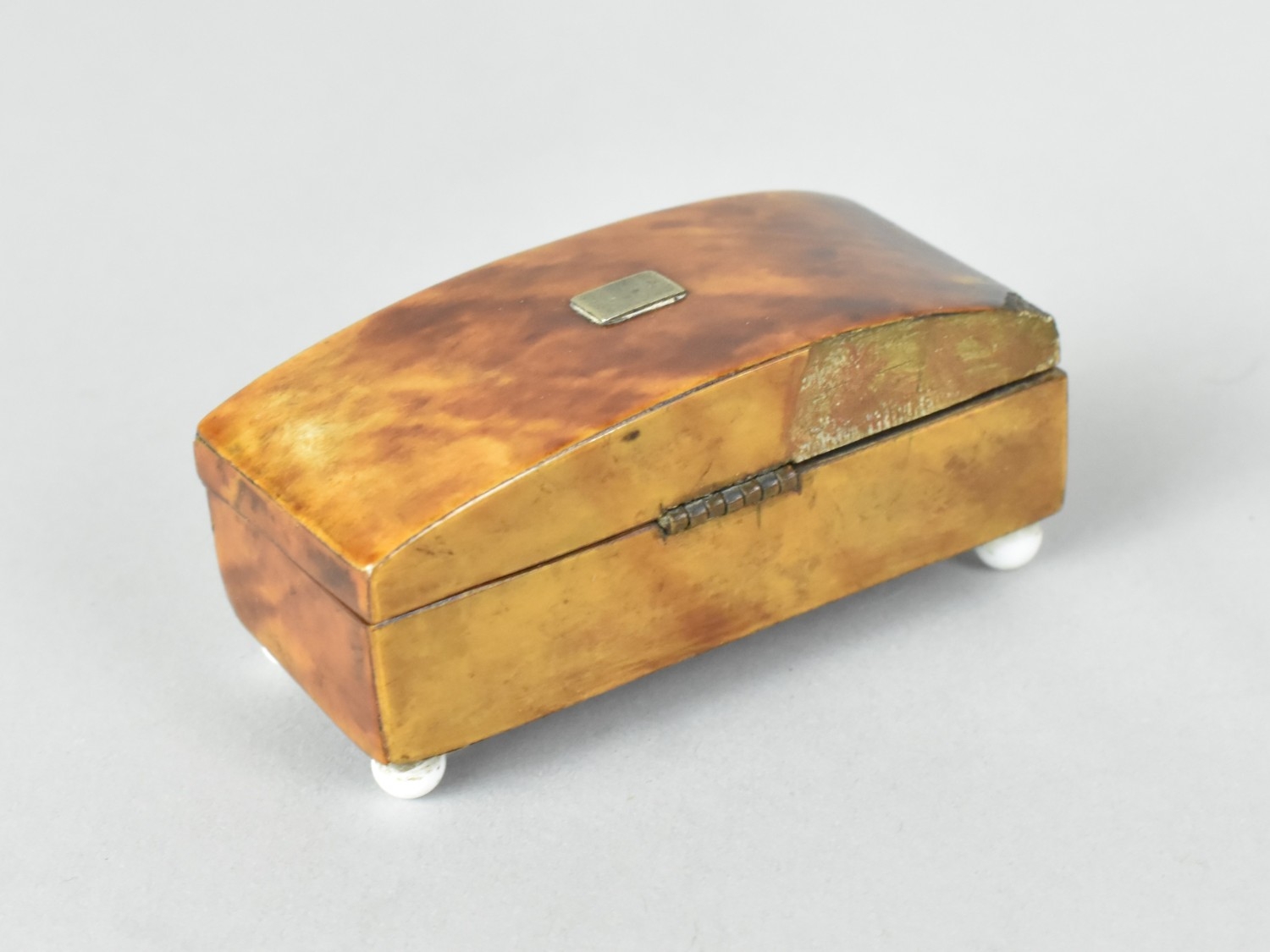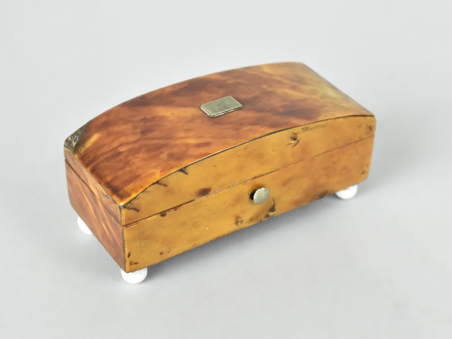 A 19th Century Miniature Tortoiseshell Box of Sarcophagus Form, Four Bun Feet, 6.5cms Wide and 2.75cms High
