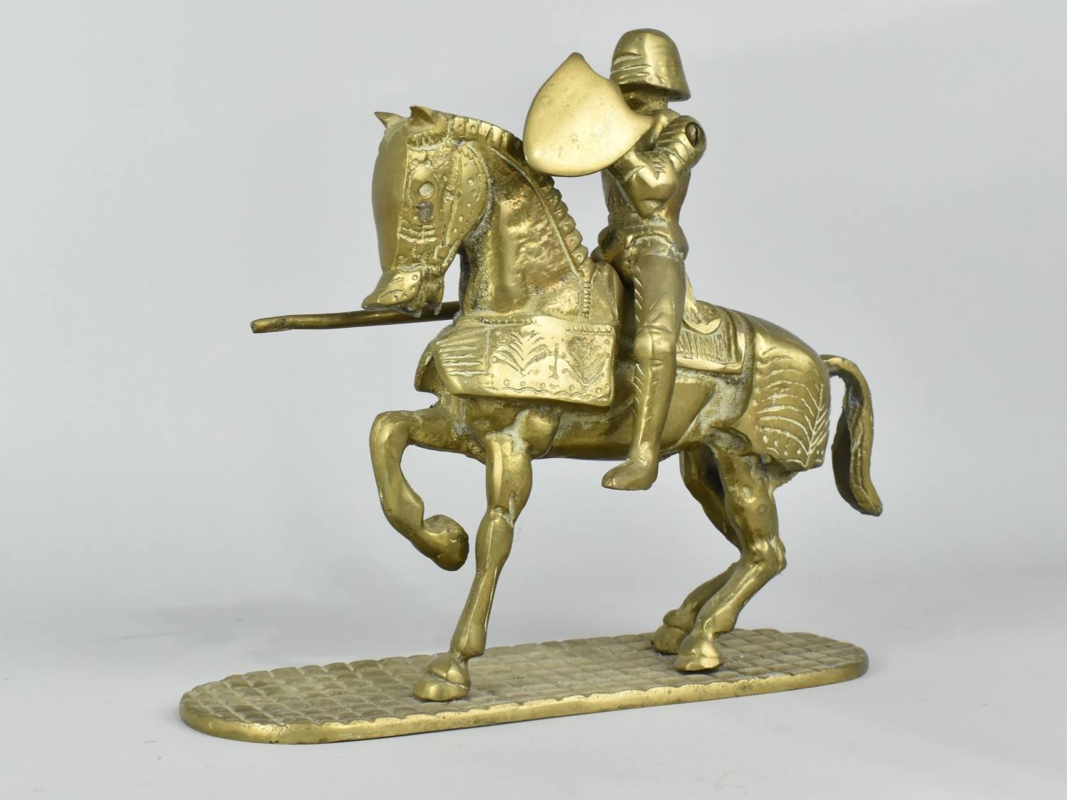 A Heavy Cast Brass Study of a Jousting Knight on Horseback, Depicted with Lance and Shield, 25cms High