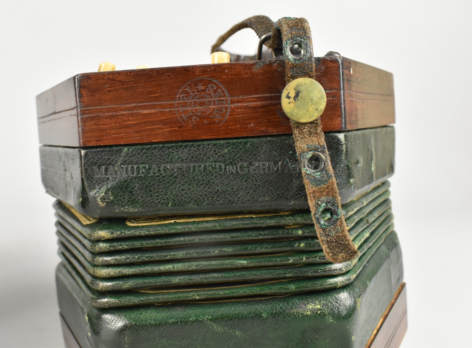 A Late Victorian/Edwardian 21 Button "Steel Notes" Concertina, Stamped "Manufactured in Germany"